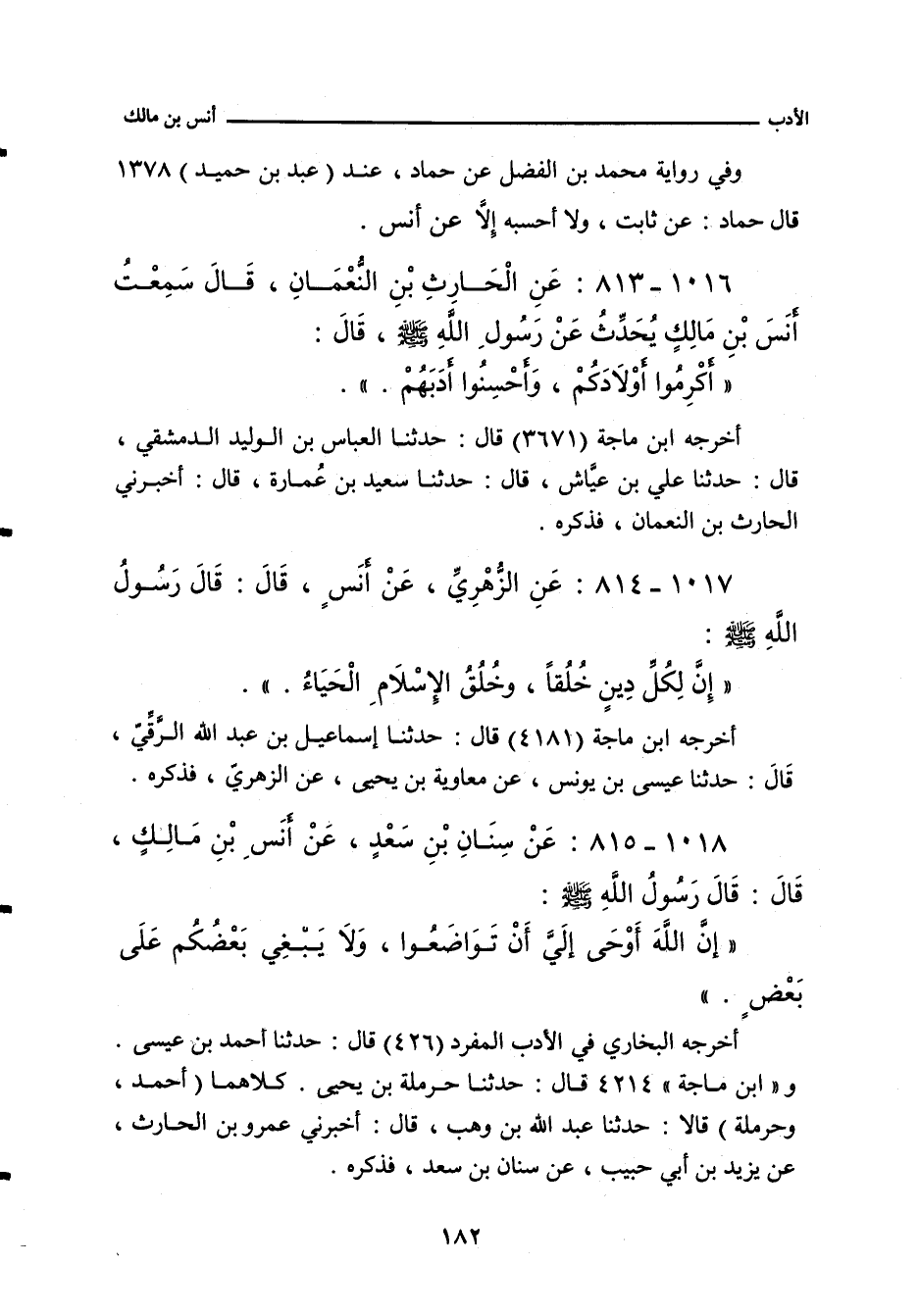 ١٠١٦ - عَنِ الْحَارِثِ بْنِ النُّعْمَانِ، سَمِعْتُ أَنَسَ بْنَ مَالِكٍ يُحَدِّثُ، عَنْ رَسُولِ اللهِ صلى الله عليه وسلم، قَالَ:
