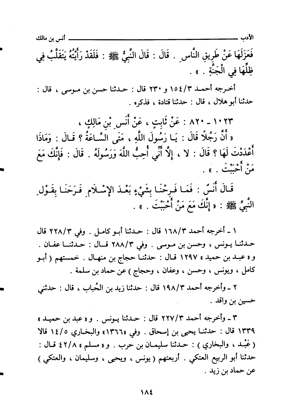 أخرجه أحمد ٣/ ١٦٨ (١٢٧٤٥) قال: حدَّثنا أبو كامل، حدَّثنا حَمَّاد. وفي ٣/ ١٩٨ (١٣٠٧٨) قال: حدَّثنا زَيْد بن الحُبَاب , قال: حدَّثني حُسَيْن بن واقد. وفي ٣/ ٢٢٧ (١٣٤٠٤) قال: حدَّثنا يُونُس، حدَّثنا حَمَّاد، يَعْنِي ابن زَيْد. وفي ٣/ ٢٢٨ (١٣٤١٩ و ١٣٤٢٠) قال: حدَّثنا يُونُس، وحَسَن بن مُوسَى , قالا: حدَّثنا حَمَّاد بن سَلَمَة. وفي ٣/ ٢٦٩ (١٣٨٨٦) و ٣/ ٢٨٨ (١٤١١٩) قال: حدَّثنا عَفَّان، حدَّثنا حَمَّاد، يَعْنِي ابن سَلَمَة. و"عَبد بن حُميد" ١٢٩٦ و ١٢٩٧ قال: حدَّثنا حَجَّاج بن مِنْهَال، حدَّثنا حَمَّاد بن سَلَمَة. وفي (١٣٣٩) قال: حدَّثنا يَحيى ابن إِسْحَاق، أخبرنا حَمَّاد بن زَيْد. وفي (١٣٦٦) قال: حدَّثني سُلَيْمان بن حَرْب، حدَّثنا حَمَّاد بن زَيْد. و"البُخَارِي" ٥/ ١٤ (٣٦٨٨) قال: حدَّثنا سُلَيْمان بن حَرْب، حدَّثنا حَمَّاد بن زَيْد. و"مسلم" ٨/ ٤٢ (٦٨٠٦) قال: حدَّثني أبو الرَّبِيع العَتَكِي، حدَّثنا حَمَّاد، يَعْنِي ابن زَيْد. وفي (٦٨٠٧) قال: حدَّثناه مُحَمد بن عُبَيْد الغُبَرِي، حدَّثنا جَعْفَر بن سُلَيْمان. وفي ٨/ ٢٠٩ (٧٥٢٠) قال: وحدَّثنا أبو بَكْر بن أَبي شَيْبَة، حدَّثنا يُونُس بن مُحَمد، عن حَمَّاد بن سَلَمَة. و (أبو يَعْلَى) ٣٢٧٧ قال: حدَّثنا عَبْد الأَعْلَى، وحَوْثَرَة، قالا: حدَّثنا حَمَّاد بن سَلَمَة. وفي (٣٢٨١) قال: حدَّثنا أبو الرَّبِيع، حدَّثنا حَمَّاد بن زَيْد.