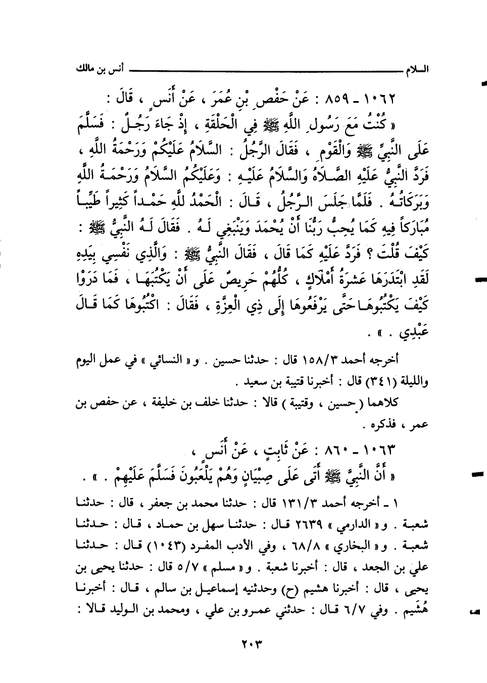 ١٠٦٢ - عَنْ حَفْصِ بْنِ عُمَرَ، عَنْ أَنَسٍ، قَالَ: