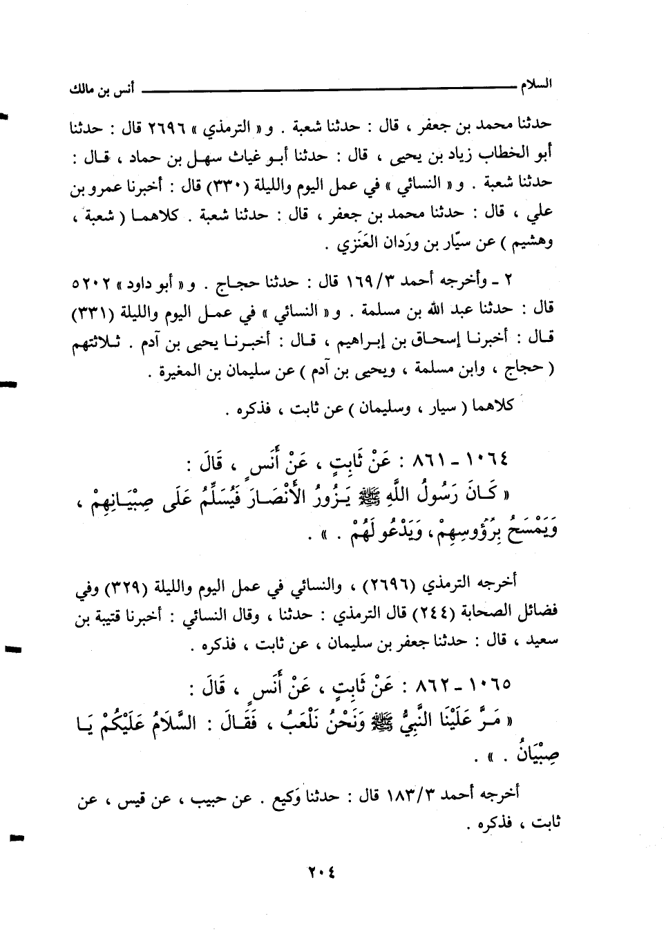 - وفي رواية: عَنْ سَيَّارٍ، قَالَ: كُنْتُ أَمْشِي مَعَ ثَابِتٍ الْبُنَانِيِّ، فَمَرَّ بِصِبْيَانٍ، فَسَلَّمَ عَلَيْهِمْ، وَحَدَّثَ ثَابِتٌ، أَنَّهُ كَانَ يَمْشِي مَعَ أَنَسٍ، فَمَرَّ بِصِبْيَانٍ، فَسَلَّمَ عَلَيْهِمْ، وَحَدَّثَ أَنَسٌ، أَنَّهُ كَانَ يَمْشِي مَعَ رَسُولِ اللهِ صلى الله عليه وسلم، فَمَرَّ بِصِبْيَانٍ، فَسَلَّمَ عَلَيْهِمْ.