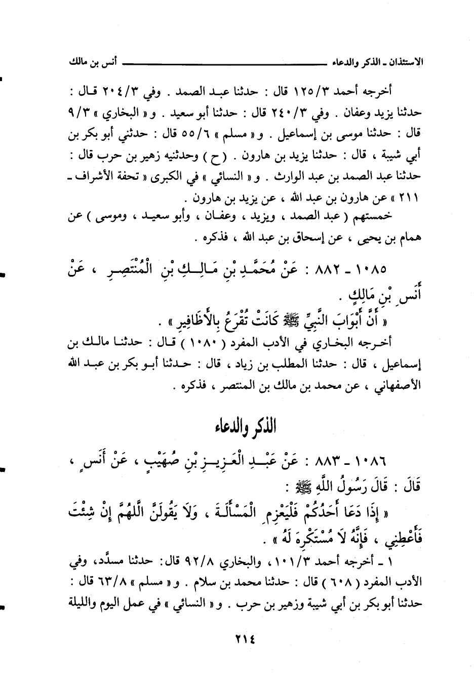 ١٠٨٥ - عَنْ مُحَمَّدِ بْنِ مَالِكِ بْنِ الْمُنْتَصِرِ، عَنْ أَنَسِ بْنِ مَالِكٍ؛