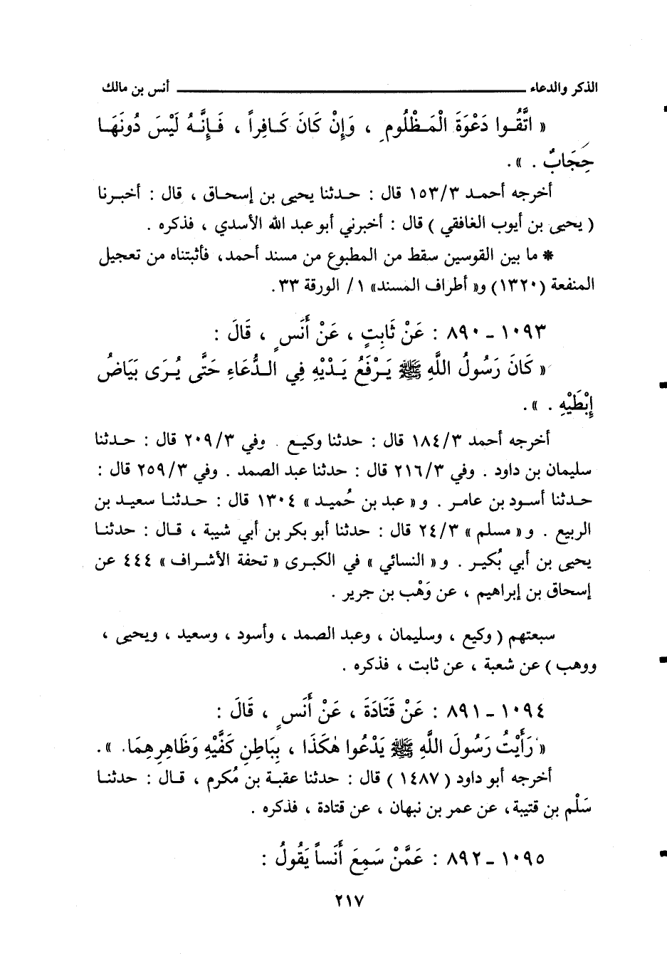 - لفظ إبراهيم بن عَرْعَرَة: أَنَّ رَسُولَ اللهِ صلى الله عليه وسلم كَانَ يَدْعُو بِبَطْنِ كَفَّيْهِ، وَيَقُولُ هَكَذَا، يُظْهِرُ كَفَّيْهِ.