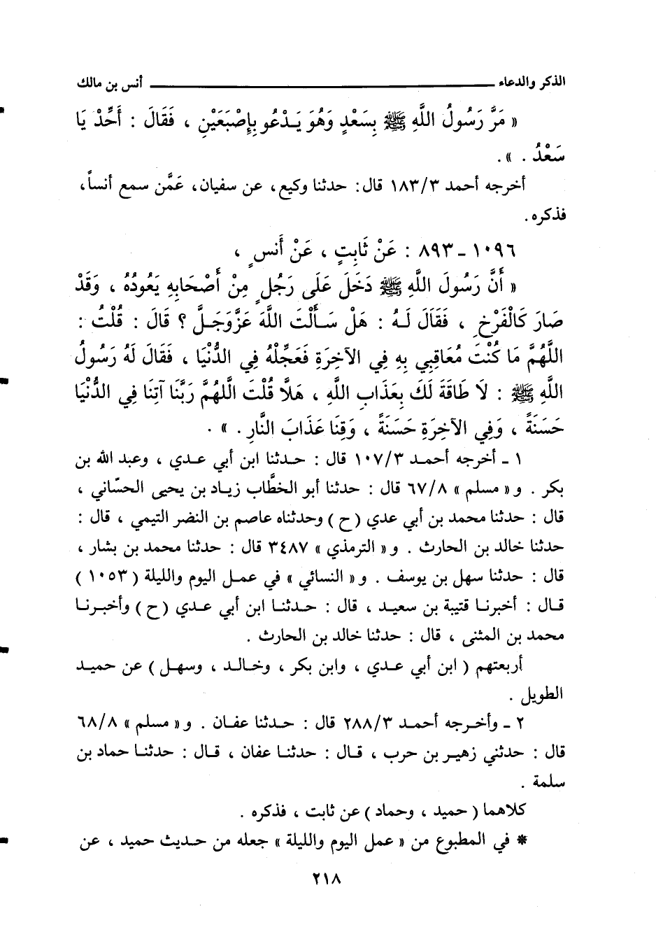 أخرجه أحمد ٣/ ١٠٧ (١٢٠٧٢) قال: حدَّثنا ابن أَبي عَدِي، عن حُمَيْد (ح) وعَبْد الله بن بَكْر السَّهْمِي، حدَّثنا حُمَيْد. وفي ٣/ ٢٨٨ (١٤١١٣) قال: حدَّثنا عَفَّان، حدَّثنا حَمَّاد. و"مسلم" ٨/ ٦٧ (٦٩٣٤) قال: حدَّثنا أبو الخَطَّاب، زِيَاد بن يَحيى الحَسَّانِي، حدَّثنا مُحَمد بن أَبي عَدِي، عن حُمَيْد. وفي (٦٩٣٥) قال: حدَّثناه عاصم بن النَّضْر التَّيْمِي، حدَّثنا خالد بن الحارث، حدَّثنا حُمَيْد. وفي ٨/ ٦٨ (٦٩٣٦) قال: وحدَّثني زُهَيْر بن حَرْب، حدَّثنا عَفَّان، حدَّثنا حَمَّاد. والتِّرْمِذِيّ" ٣٤٨٧ قال: حدَّثنا مُحَمد بن بَشَّار، حدَّثنا سَهْل بن يُوسُف، حدَّثنا حُمَيْد. وفي (٣٤٨٨) قال: حدَّثنا مُحَمد بن المُثَنَّى، حدَّثنا خالد بن الحارث، عن حُمَيْد. و"النَّسائي"، في "الكبرى" ٧٤٦٤ قال: أخبرنا قُتَيْبَة بن سَعِيد، قال: أخبرنا ابن أَبي عَدِي، عن حُمَيْد. وفي "عمل اليوم والليلة" ١٠٥٣ قال: أخبرنا قُتَيْبَة بن سَعِيد، قال: حدَّثنا ابن أَبي عَدِي، عن حُمَيْد (ح) وأخبرنا مُحَمد بن المُثَنَّى، قال: حدَّثنا خالد بن الحارث، قال: حدَّثنا حُمَيْد. و (أبو يَعْلَى) ٣٥١١ قال: حدَّثنا زُهَيْر , حدَّثنا عَفَّان , حدَّثنا حَمَّاد. و (ابن حِبَّان) ٩٣٦ قال: أخبرنا مُحَمد ابن يزيد الزُّرَقِي، بِطَرَسُوس، قال: حدَّثنا مُحَمد بن المُثَنَّى، قال: حدَّثنا خالد بن الحارث، قال: حدَّثنا حُمَيْد. وفي (٩٤١) قال: أخبرنا عُمَر بن مُحَمد الهَمْدَانِي، قال: حدَّثنا مُحَمد بن عَبْد الله بن بَزِيع، قال: حدَّثنا بِشْر بن المُفَضَّل، قال: حدَّثنا حُمَيْد.