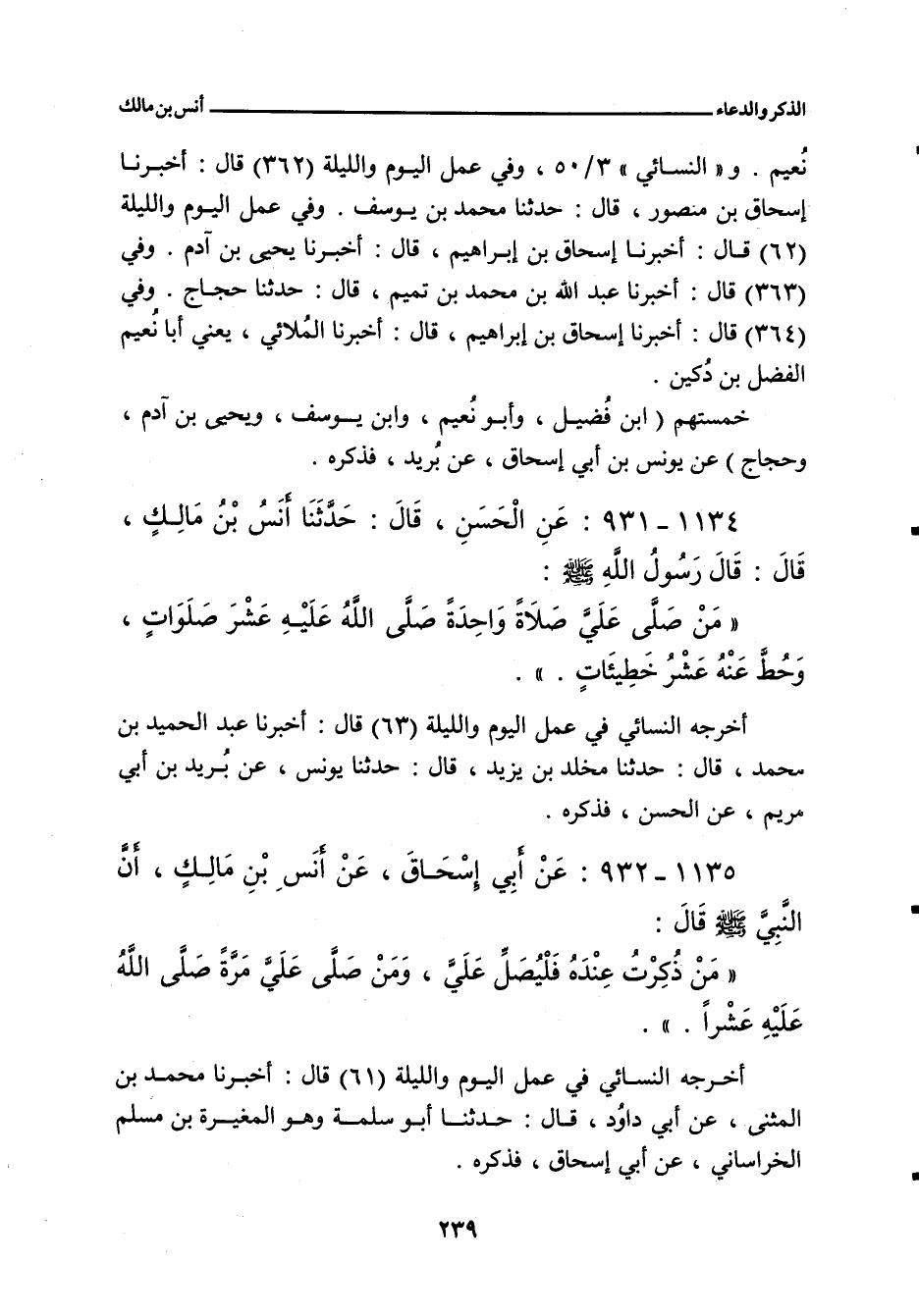 ١١٣٥ - عَنْ أَبِي إِسْحَاقَ، عَنْ أَنَسِ بْنِ مَالِكٍ، أَنَّ النَّبِيَّ صلى الله عليه وسلم قَالَ: