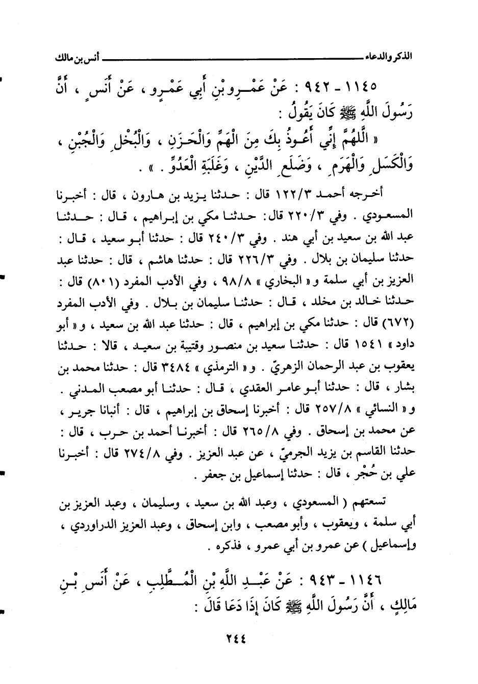 ١١٤٥ - عَنْ عَمْرِو بْنِ أَبِي عَمْرٍو، عَنْ أَنَسٍ؛ أَنَّ رَسُولَ اللهِ صلى الله عليه وسلم كَانَ يَقُولُ: