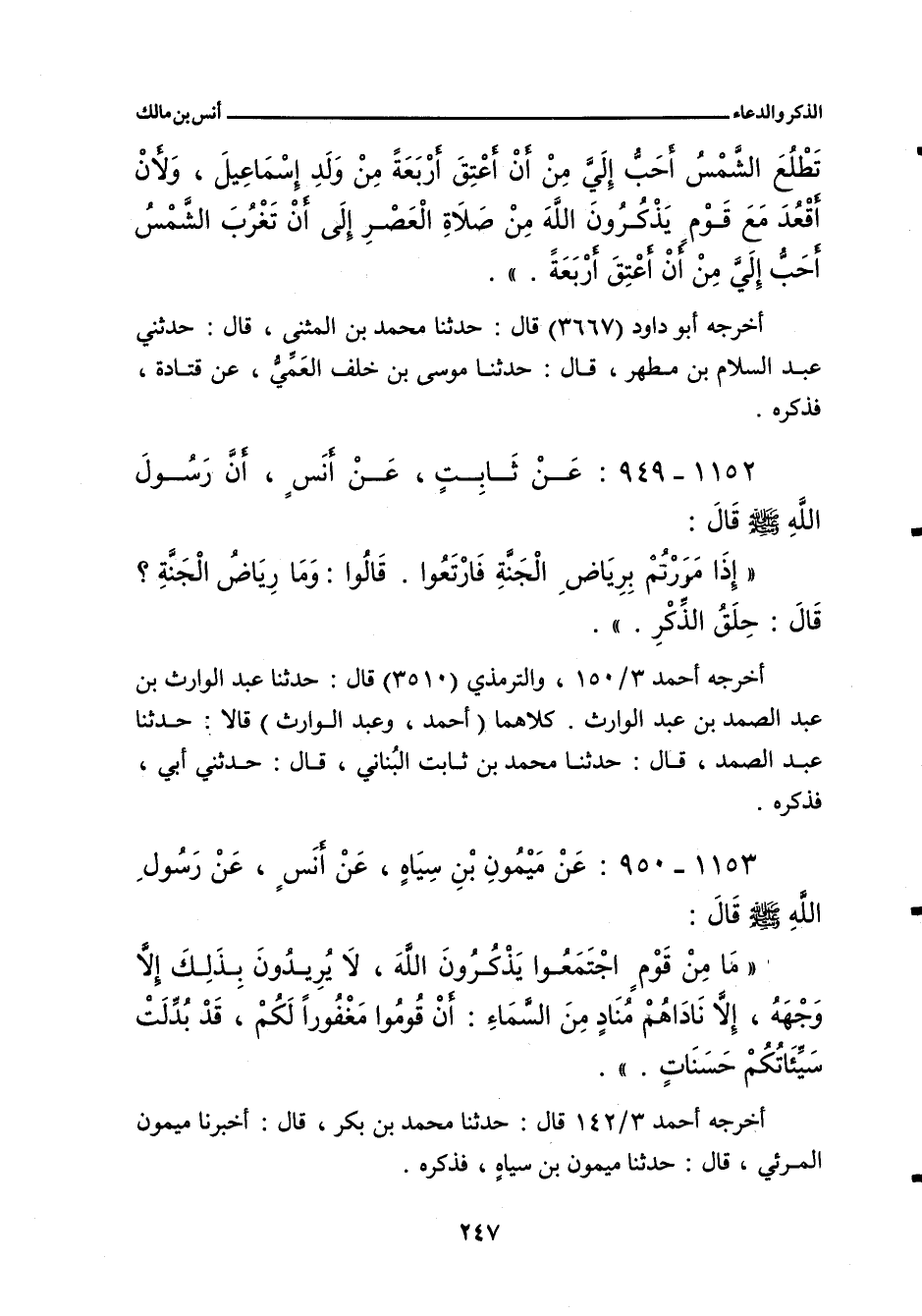 ١١٥٢ - عَنْ ثَابِتٍ، عَنْ أَنَسٍ، أَنَّ رَسُولَ اللهِ صلى الله عليه وسلم قَالَ:
