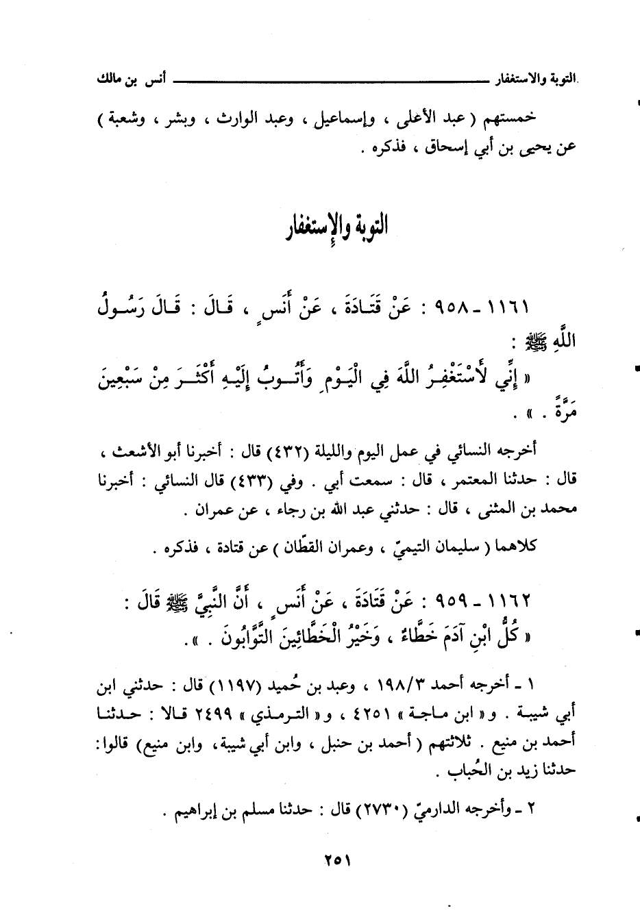 ١١٦١ - عَنْ قَتَادَةَ، عَنْ أَنَسٍ، قَالَ: قَالَ رَسُولُ اللهِ صلى الله عليه وسلم: