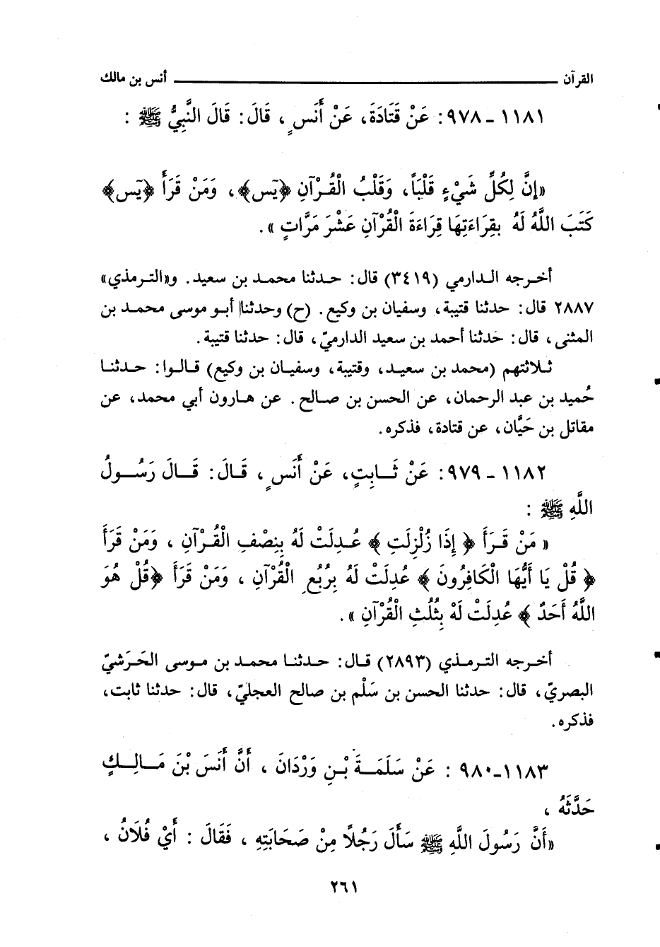 ١١٨١ - عَنْ قَتَادَةَ، عَنْ أَنَسٍ، قَالَ: قَالَ رَسُولُ اللهِ صلى الله عليه وسلم: