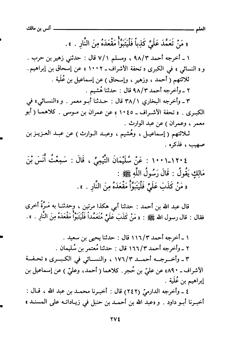 أخرجه أحمد ٣/ ٩٨ (١١٩٦٤) قال: حدَّثنا هُشَيْم (ح) وإِسْمَاعِيل. و"البُخَارِي" ١/ ٣٨ (١٠٨) قال: حدَّثنا أبو مَعْمَر، قال: حدَّثنا عَبْد الوارث. و"مسلم" ١/ ٧ (٤) قال: حدَّثني زُهَيْر بن حَرْب، حدَّثنا إِسْمَاعِيل، يَعْنِي ابن عُلَيَّة. و"النَّسائي"، في "الكبرى" ٥٨٨٢ قال: أخبرنا إِسْحَاق بن إبراهيم , قال: أنبأنا إِسْمَاعِيل بن إبراهيم (ح) وأخبرنا عِمْرَان بن مُوسَى , قال: حدَّثنا عَبْد الوارث.