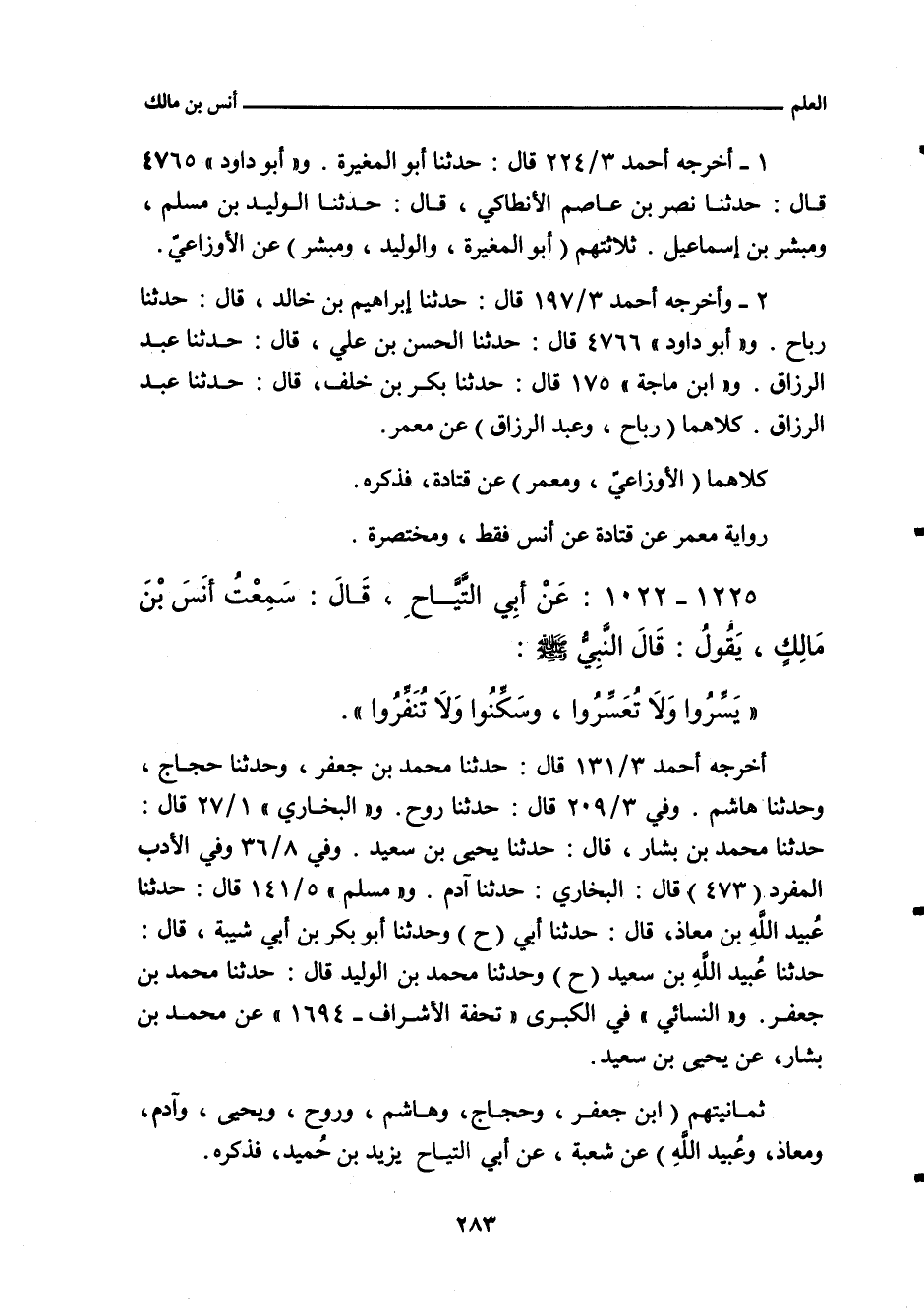 ١٢٢٥ - عَنْ أَبِي التَّيَّاحِ، قَالَ: سَمِعْتُ أَنَسَ بْنَ مَالِكٍ، يَقُولُ: إِنَّ رَسُولَ اللهِ صلى الله عليه وسلم قَالَ: