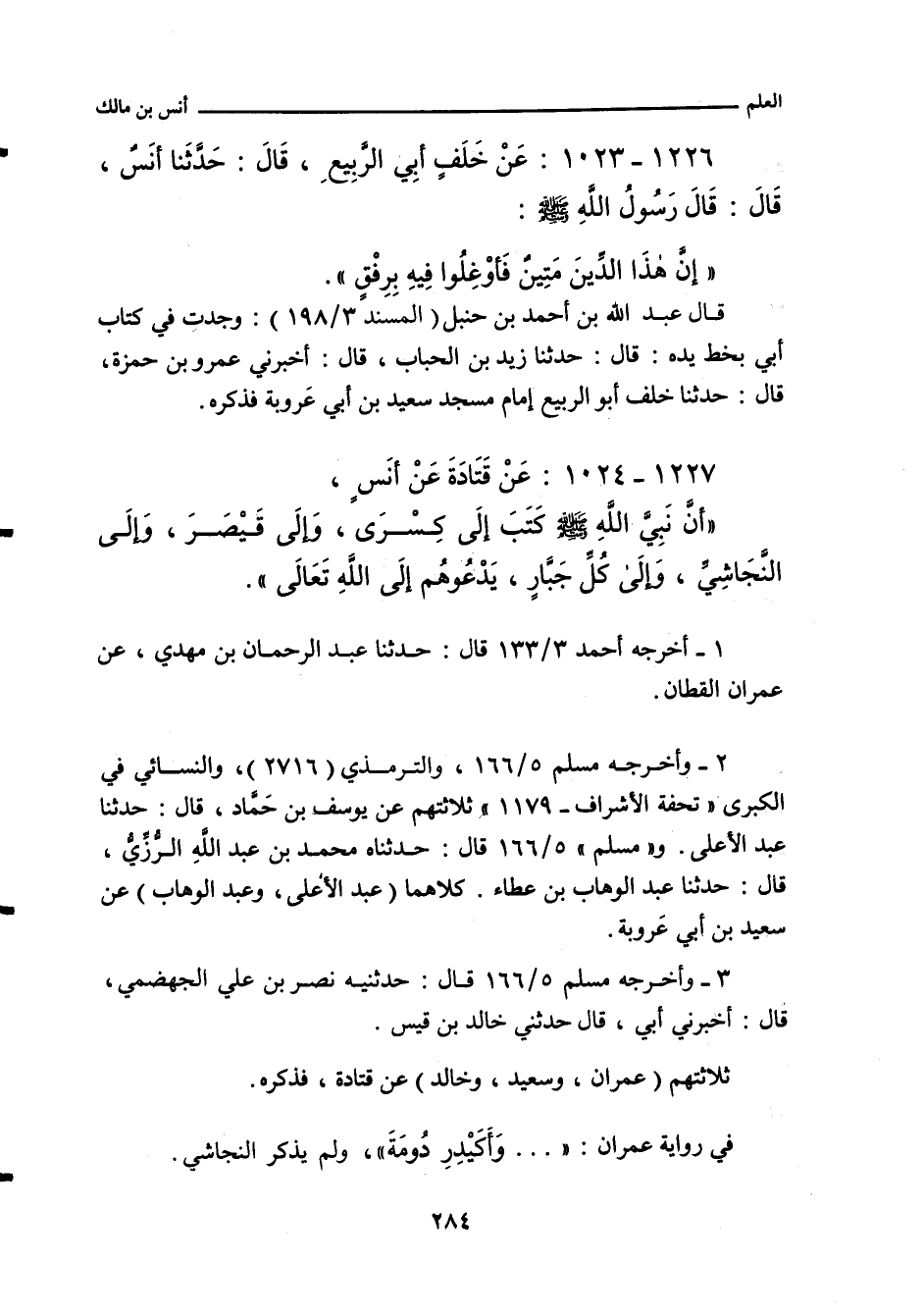 ١٢٢٦ - عَنْ خَلَفٍ أَبِي الرَّبِيعِ، حَدَّثَنَا أَنَسٌ، قَالَ: قَالَ رَسُولُ اللهِ صلى الله عليه وسلم: