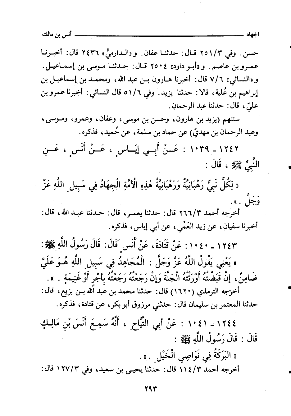 لِكُلِّ نَبِيٍّ رَهْبَانِيَّةٌ، وَرَهْبَانِيَّةُ هَذِهِ الأُمَّةِ الْجِهَادُ فِي سَبِيلِ اللهِ، عَزَّ وَجَلَّ.