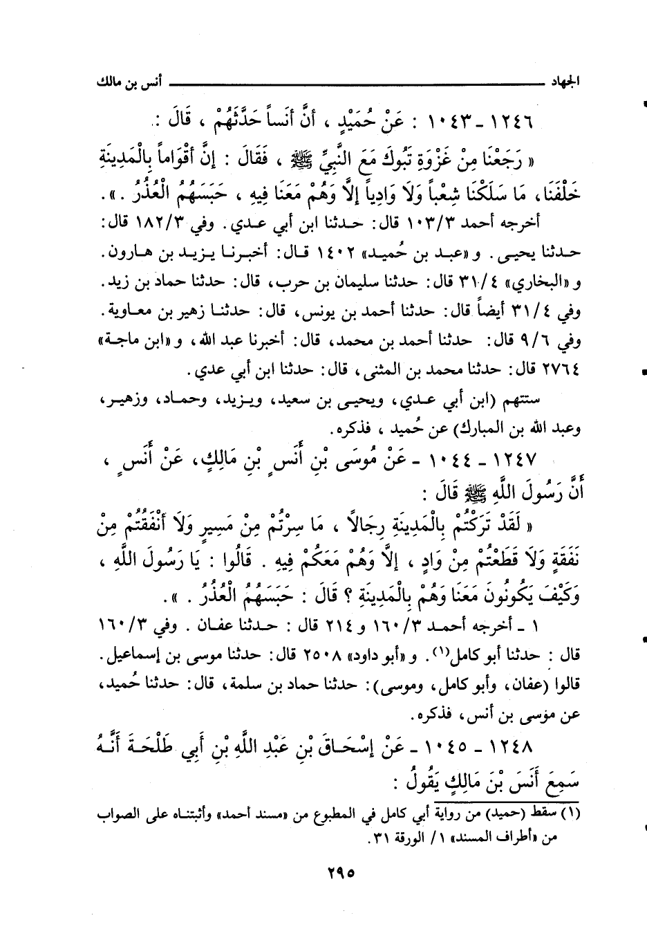 ١٢٤٧ - عَنْ مُوسَى بْنِ أَنَسِ بْنِ مَالِكٍ , عَنْ أَنَسٍ , أَنَّ رَسُولَ اللَّهِ صلى الله عليه وسلم قَالَ: