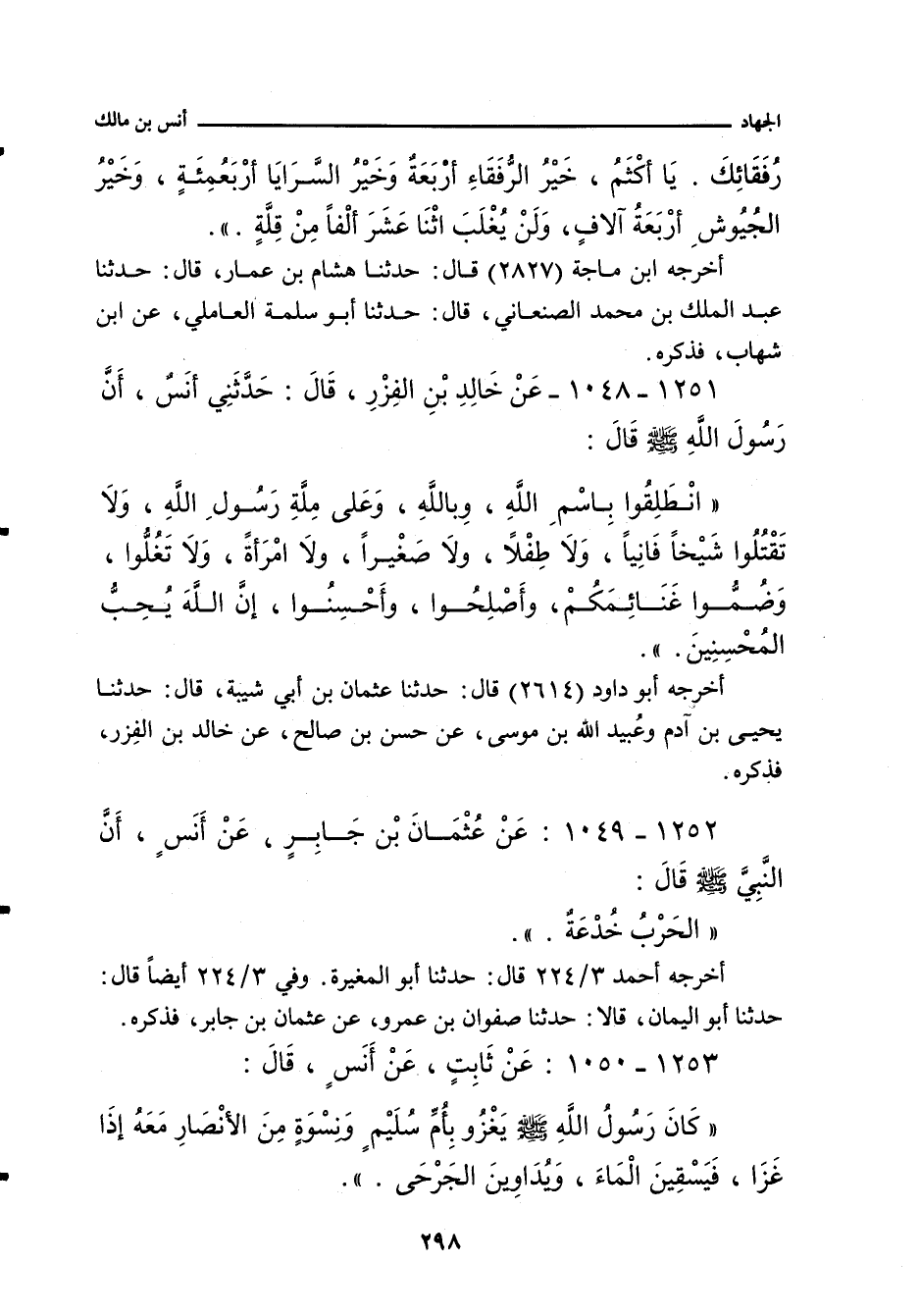 ١٢٥٢ - عَنْ عَمْرِو بْنِ عُثْمَانَ بْنِ جَابِرٍ، عَنْ أَنَسٍ، أَنَّ النَّبِيَّ صلى الله عليه وسلم قَالَ: