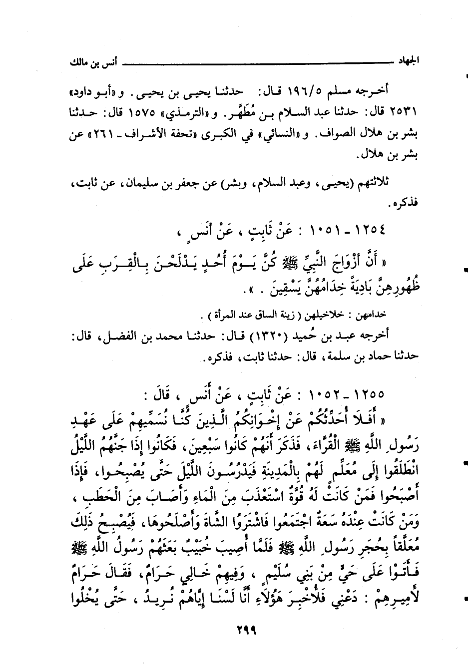أخرجه مُسْلم ٥/ ١٩٦ (٤٧٠٨) قال: حدَّثنا يَحيى بن يَحيى. و (أبو داود (٢٥٣١ قال: حدَّثنا عَبْد السَّلام بن مُطَهِّر. و (التِّرْمِذِي (١٥٧٥ قال: حدَّثنا بِشْر بن هِلَال الصَّوَّاف. و"النَّسائي"، في "الكبرى" ٨٨٣١ قال: أخبرنا بِشْر بن هِلَال.