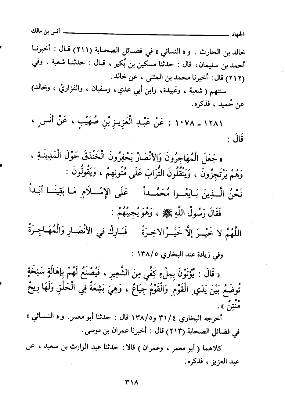 جَعَلَ الْمُهَاجِرُونَ وَالأَنْصَارُ يَحْفِرُونَ الْخَنْدَقَ حَوْلَ الْمَدِينَةِ، وَيَنْقُلُونَ التُّرَابَ عَلَى مُتُونِهِمْ، وَهُمْ يَقُولُونَ: