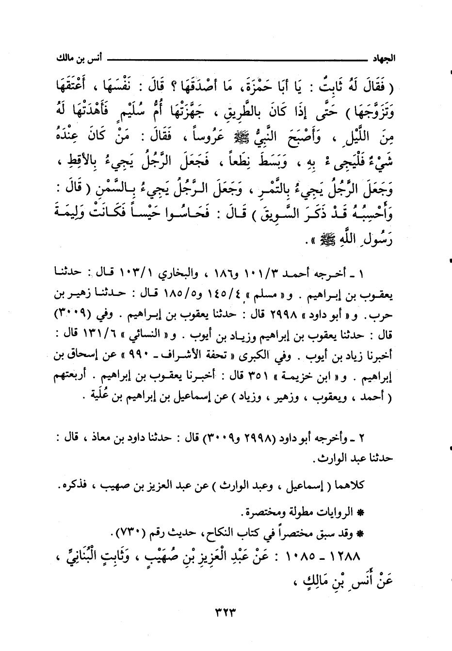 أخرجه أحمد ٣/ ١٠١ (١٢٠١٥) قال: حدَّثنا إِسْمَاعِيل. و"البُخَارِي" ٣٧١ قال: حدَّثنا يَعْقُوب بن إبراهيم، قال: حدَّثنا إِسْمَاعِيل ابن عُلَيَّة. و"مسلم" ٣٤٨١ و ٤٦٨٨ قال: حدَّثني زُهَيْر بن حَرْب، حدَّثنا إِسْمَاعِيل، يَعْنِي ابن عُلَيَّة. و"أبو داود" ٢٩٩٦ قال: حدَّثنا مُسَدَّد، حدَّثنا حَمَّاد بن زَيْد. وفي (٢٩٩٨) قال: حدَّثنا داود بن مُعَاذ، حدثنا عَبْد الوارث (ح) وحدثنا يَعْقُوب ابن إبراهيم، المَعْنَى، قال: حدَّثنا ابن عُلَيَّة. وفي (٣٠٠٩) قال: حدَّثنا داود ابن مُعَاذ , حدَّثنا عَبْد الوارث (ح) وحدَّثنا يَعْقُوب بن إبراهيم , وزِيَاد بن أَيُّوب، أن إِسْمَاعِيل بن إبراهيم حدَّثهم. و"النَّسائي" ٦/ ١٣١، وفي "الكبرى" ٥٥٤٩ و ٦٥٦٤ قال: أخبرنا زِيَاد ابن أَيُّوب، قال: حدَّثنا إِسْمَاعِيل ابن عُلَيَّة. وفي "الكبرى" ١١٣٧١ قال: أخبرنا إِسْحَاق بن إبراهيم، قال: أخبرنا إِسْمَاعِيل. و"ابن خزيمة" ٣٥١ قال: حدَّثنا يَعْقُوب بن إبراهيم الدَّوْرَقِي , أخبرنا ابن عُلَيَّة.