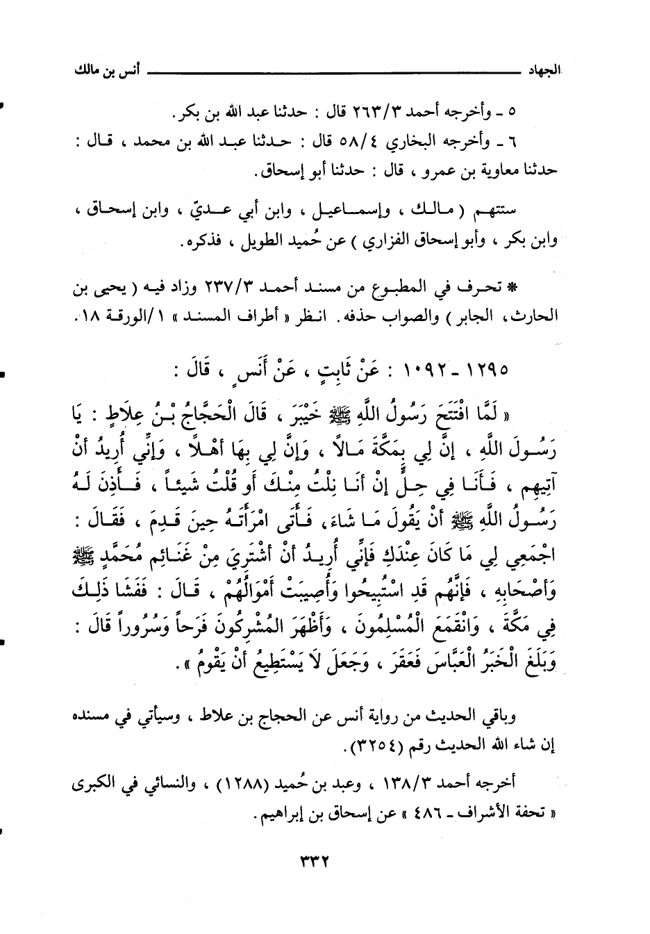 ستتهم (مالك، وإِسْمَاعِيل، وابن أَبي عَدِي، ومُحَمد بن إِسْحَاق، وعَبْد الله بن بَكْر، وأبو إِسْحَاق) عن حُمَيْد الطَّوِيل، فذكره.
