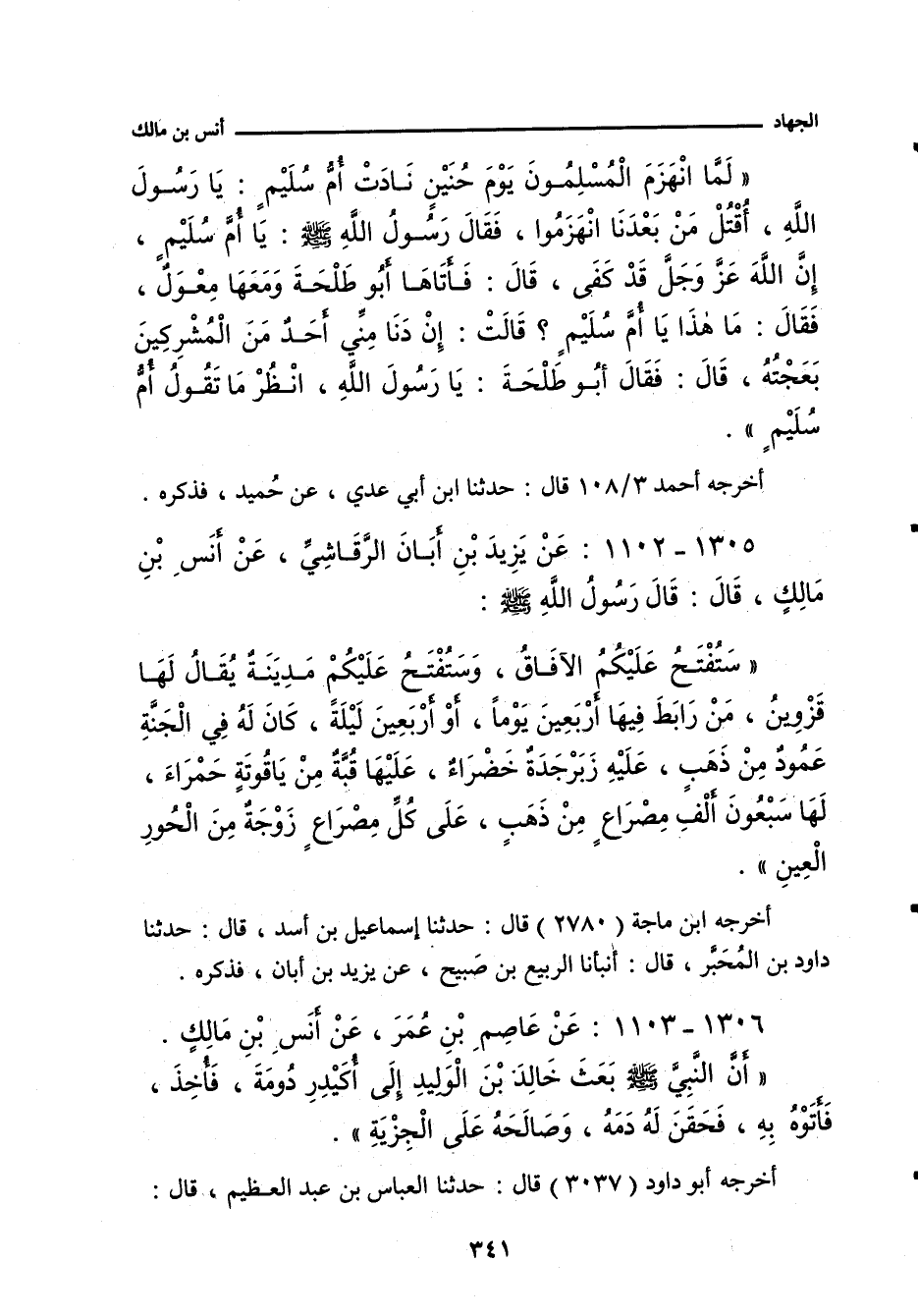 ١٣٠٦ - عَنْ عَاصِمِ بْنِ عُمَرَ، عَنْ أَنَسِ بْنِ مَالِكٍ، وَعَنْ عُثْمَانَ بْنِ أَبِي سُلَيْمَانَ؛