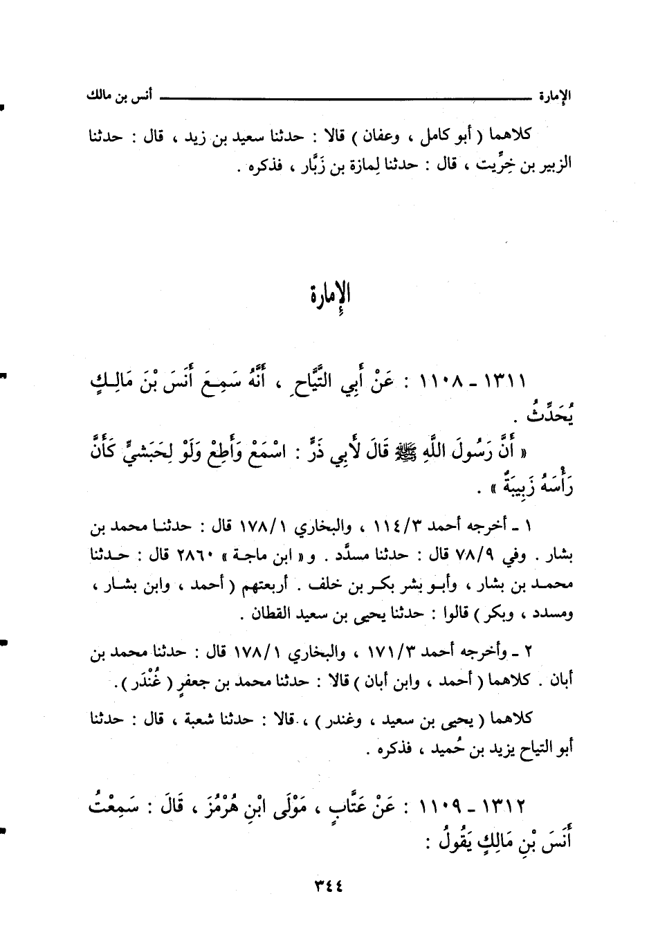 ١٣١١ - عَنْ أَبِي التَّيَّاحِ، أَنَّهُ سَمِعَ أَنَسَ بْنَ مَالِكٍ يُحَدِّثُ؛
