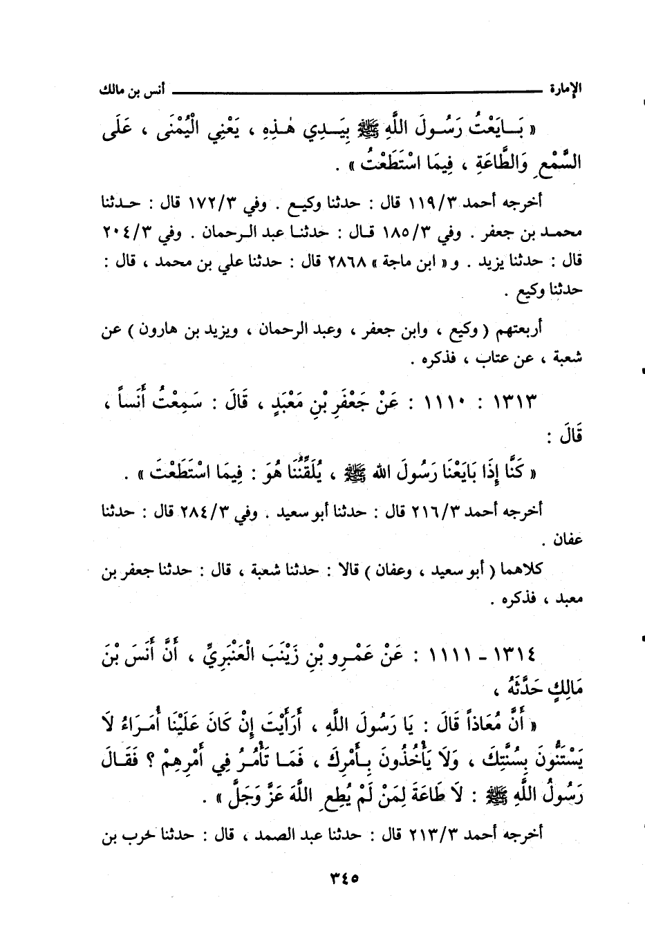 - لفظ أبي سَعِيد: عن جَعْفَرِ بْنِ مَعْبَدٍ ابْنِ أَخِي حُمَيْدِ بْنِ عَبْدِ الرَّحْمَانِ الْحِمْيَرِيِّ، قَالَ: ذَهَبْتُ مَعَ حُمَيْدٍ إِلَى أَنَسِ بْنِ مَالِكٍ، فَقَالَ: