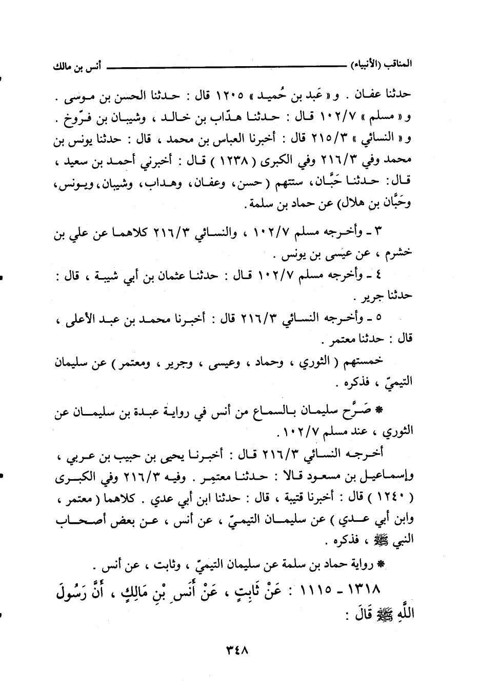 - وأخرجه النَّسَائِي ٣/ ٢١٥، وفي "الكبرى" ١٣٣٠ قال: أخبرنا مُحَمد بن علي بن حَرْب , قال: حدَّثنا مُعَاذ بن خالد , قال: أنبأنا حَمَّاد بن سَلَمَة، عن سُلَيْمان التَّيْمِي، عن ثابت، عن أَنَس، فذكره.