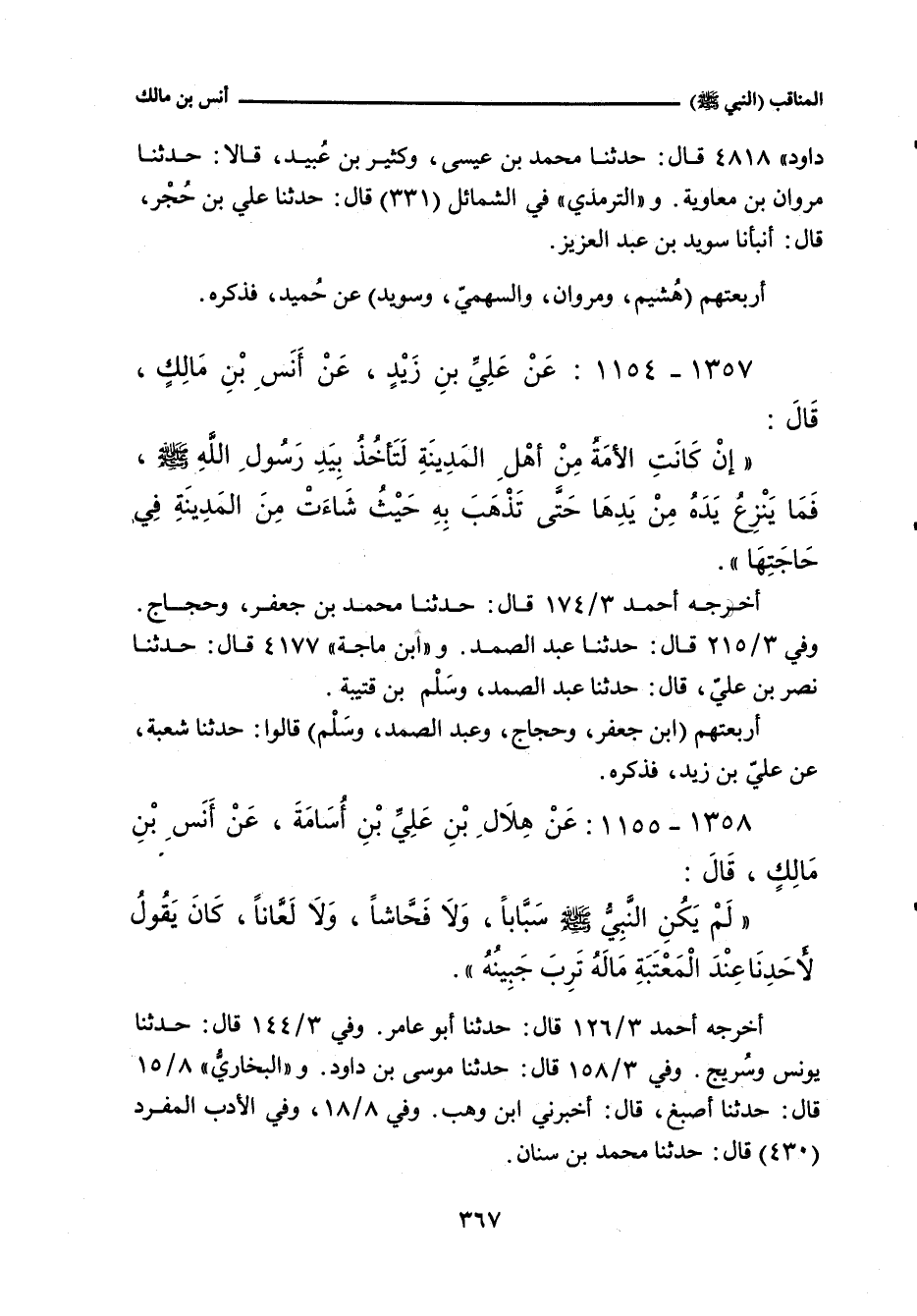 ١٣٥٧ - عَنْ عَلِيِّ بْنِ زَيْدٍ، قَالَ: قَالَ أَنَسُ بْنُ مَالِكٍ: