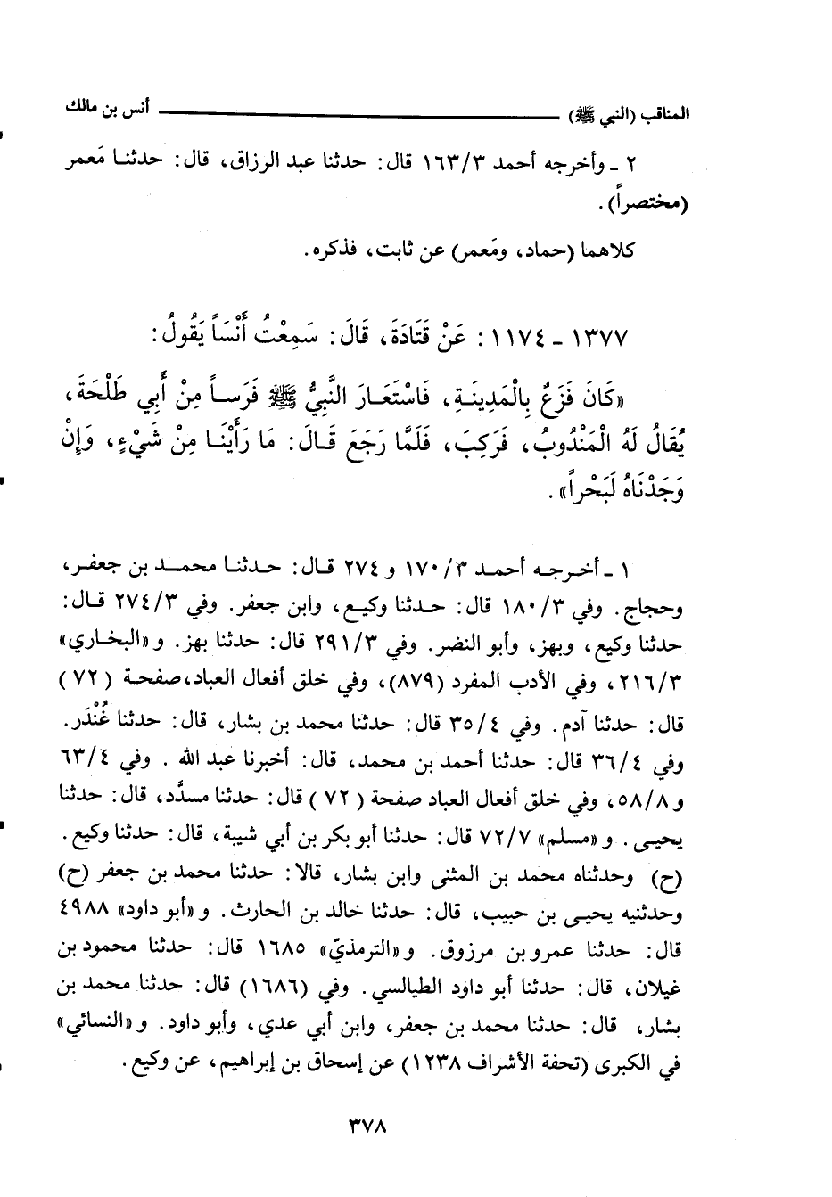 ١٣٧٧ - عَنْ قَتَادَةَ، قَالَ: سَمِعْتُ أَنَسًا يَقُولُ: