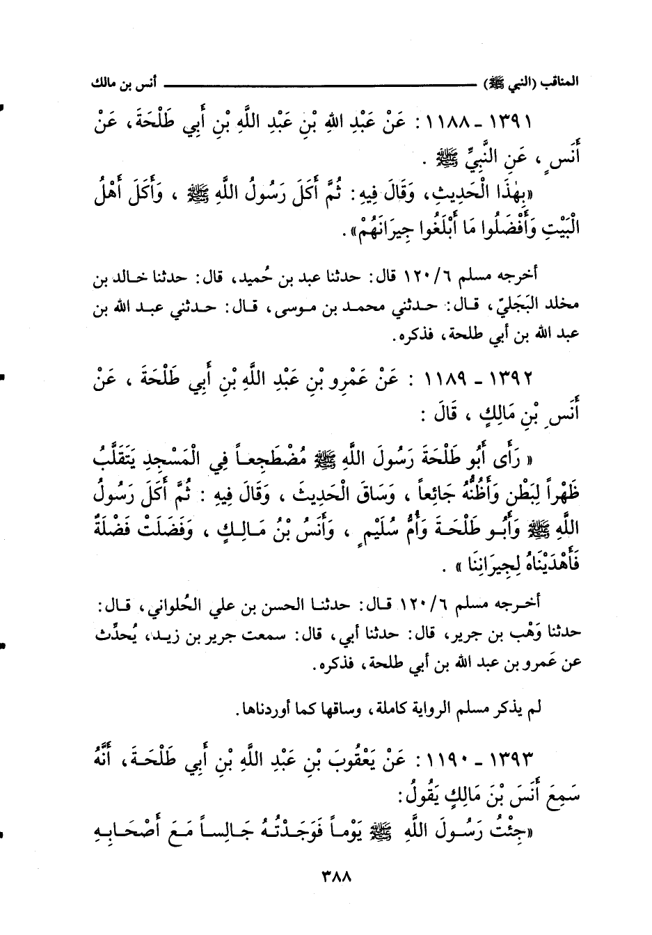 ١٣٩١ - عَنْ عَبْدِ اللهِ بْنِ عَبْدِ اللهِ بْنِ أَبِي طَلْحَةَ، عَنْ أَنَسِ بْنِ مَالِكٍ، عَنِ النَّبِيِّ صلى الله عليه وسلم؛
