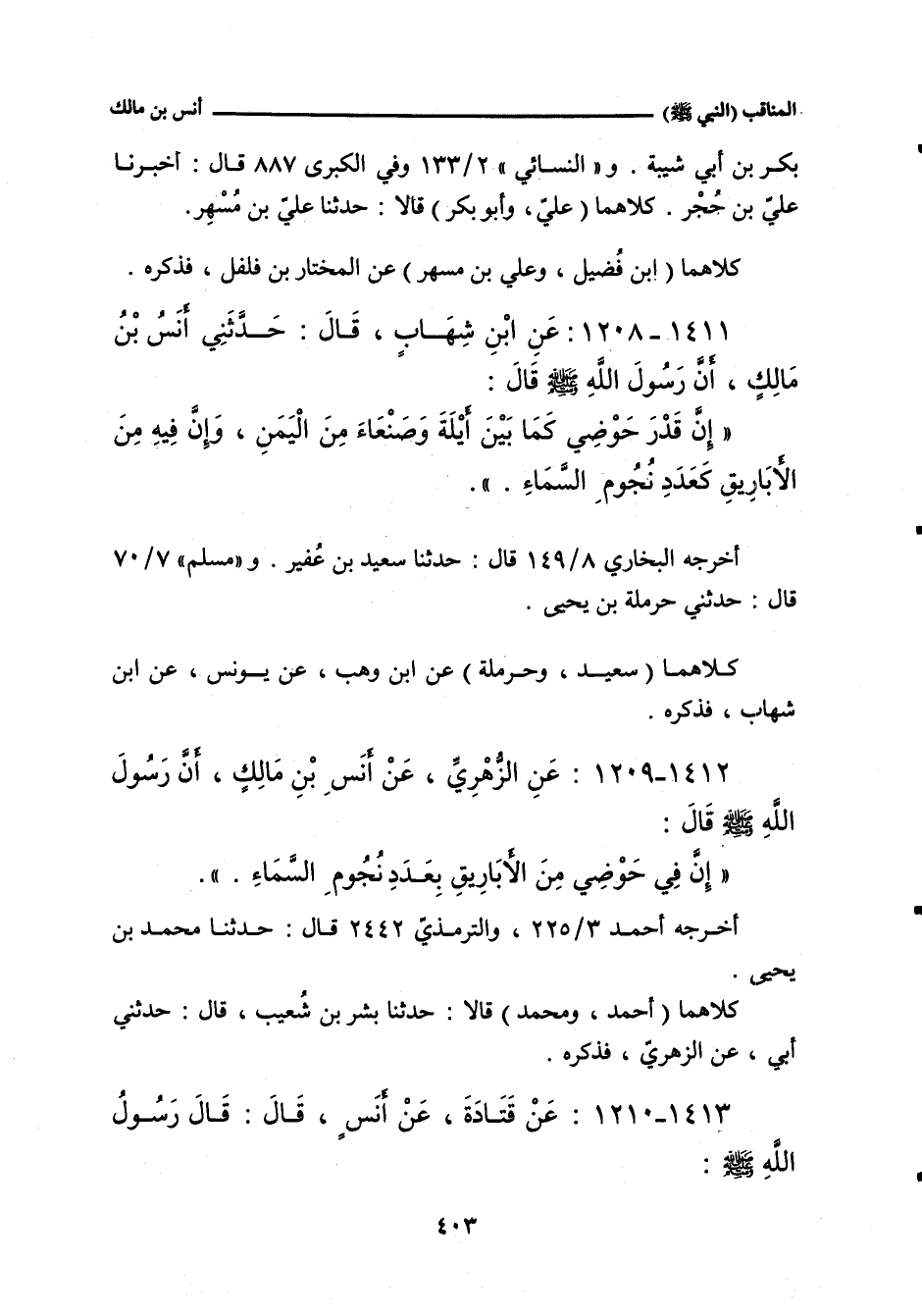 ١٤١١ - عَنِ ابْنِ شِهَابٍ، قَالَ: حَدَّثَنِي أَنَسُ بْنُ مَالِكٍ، أَنَّ رَسُولَ اللهِ صلى الله عليه وسلم قَالَ: