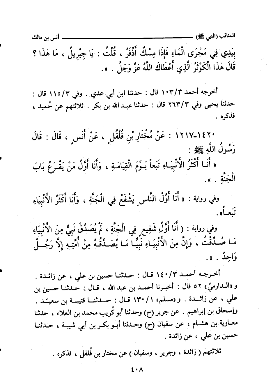 ١٤٢٠ - عَنْ مُخْتَارِ بْنِ فُلْفُلٍ، عَنْ أَنَسِ بْنِ مَالِكٍ، قَالَ: قَالَ رَسُولُ اللهِ صلى الله عليه وسلم: