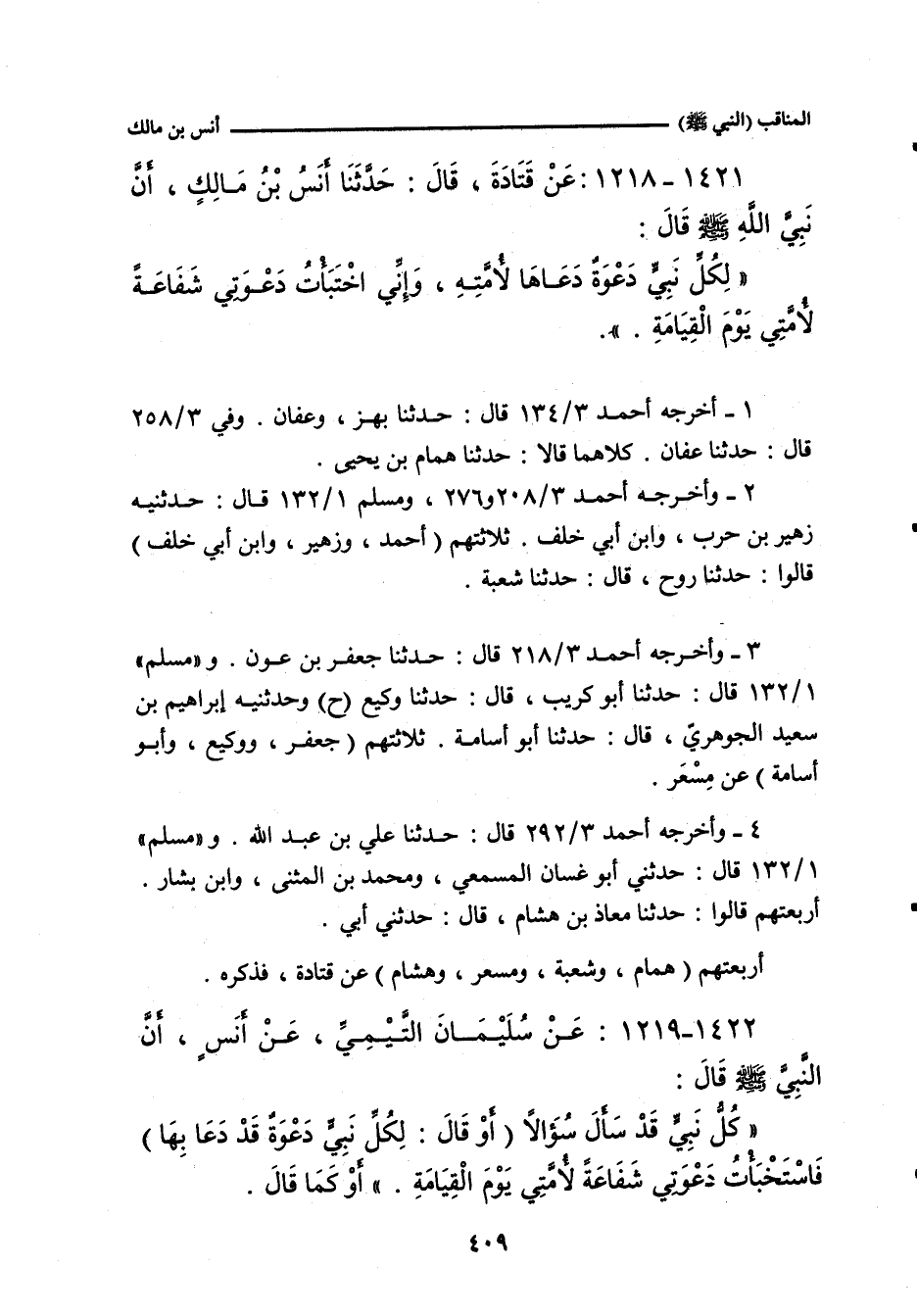 ١٤٢٢ - عَنْ سُلَيْمَانَ التَّيْمِيِّ، عَنْ أَنَسٍ، أَنَّ النَّبِيَّ صلى الله عليه وسلم قَالَ:
