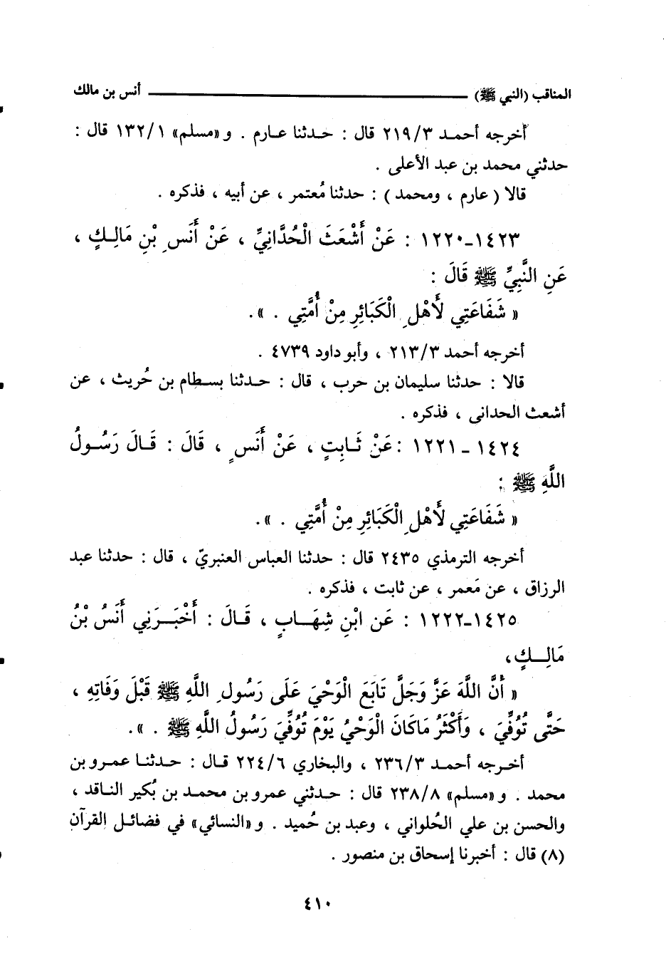 ١٤٢٣ - عَنْ أَشْعَثَ الْحُدَّانِيِّ، عَنْ أَنَسِ بْنِ مَالِكٍ، عَنِ النَّبِيِّ صلى الله عليه وسلم، قَالَ:
