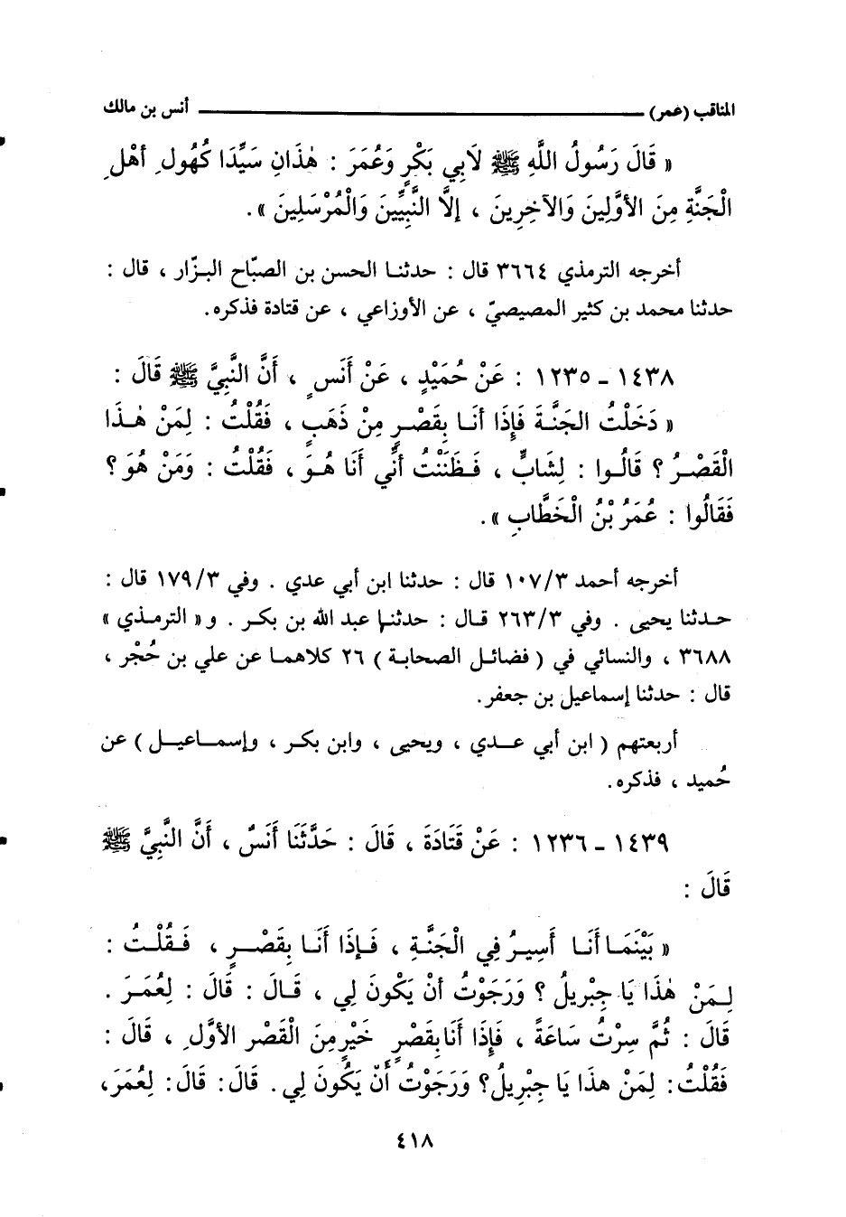 ١٤٣٨ - عن حُمَيْد، عَنْ أَنَسٍ، أن النبي صلى الله عليه وسلم قال: