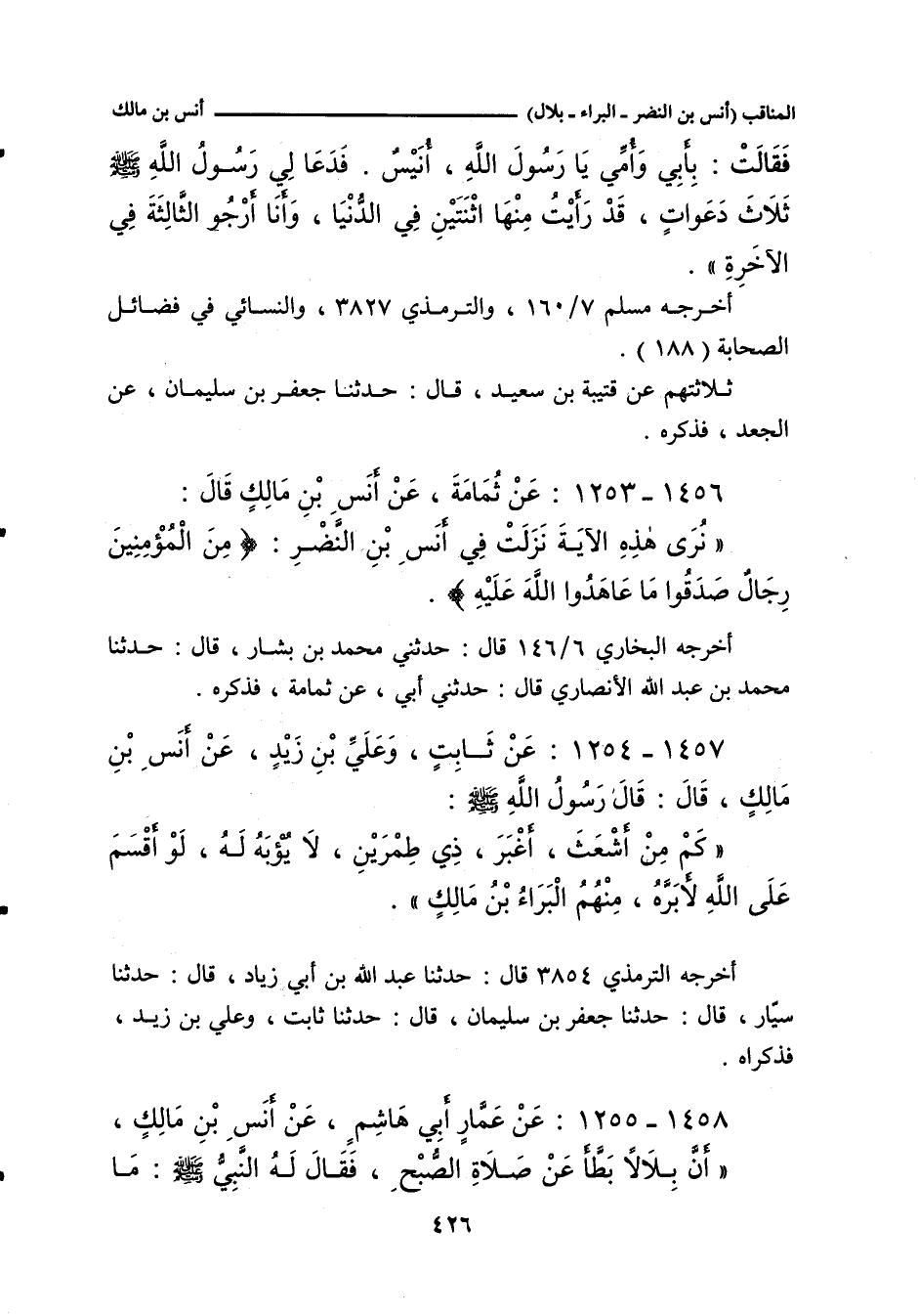 ١٤٥٦ - عَنْ ثُمَامَةَ، عَنْ أَنَسِ بْنِ مَالِكٍ، قَالَ: