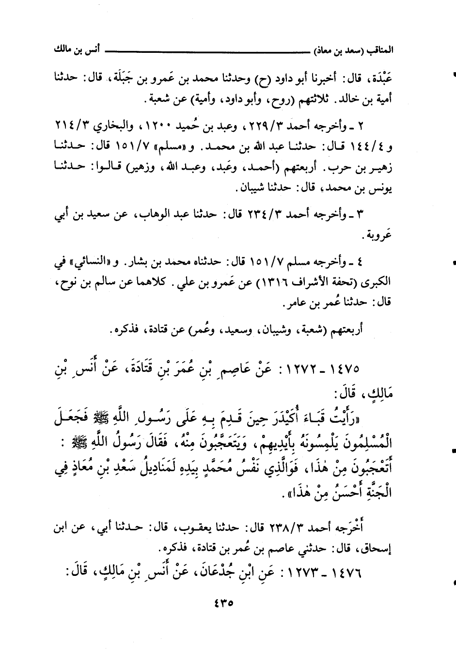 ١٤٧٥ - عَنْ عَاصِمِ بْنِ عُمَرَ بْنِ قَتَادَةَ، عَنْ أَنَسِ بْنِ مَالِكٍ، قَالَ: