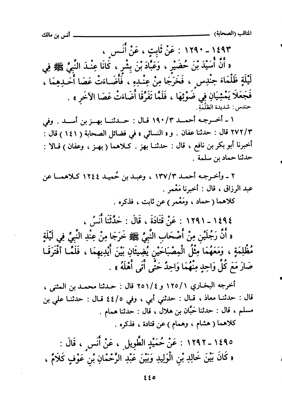 أخرجه البُخَارِي ١/ ١٢٥ (٤٦٥) و ٤/ ٢٥١ (٣٦٣٩) قال: حدَّثنا مُحَمد بن المُثَنَّى، قال: حدَّثنا مُعَاذ بن هِشَام، قال: حدَّثني أَبي. وفي ٥/ ٤٤ (٣٨٠٥) قال: حدَّثنا علي بن مُسْلم، حدَّثنا حَبَّان بن هِلَال، حدَّثنا هَمَّام.