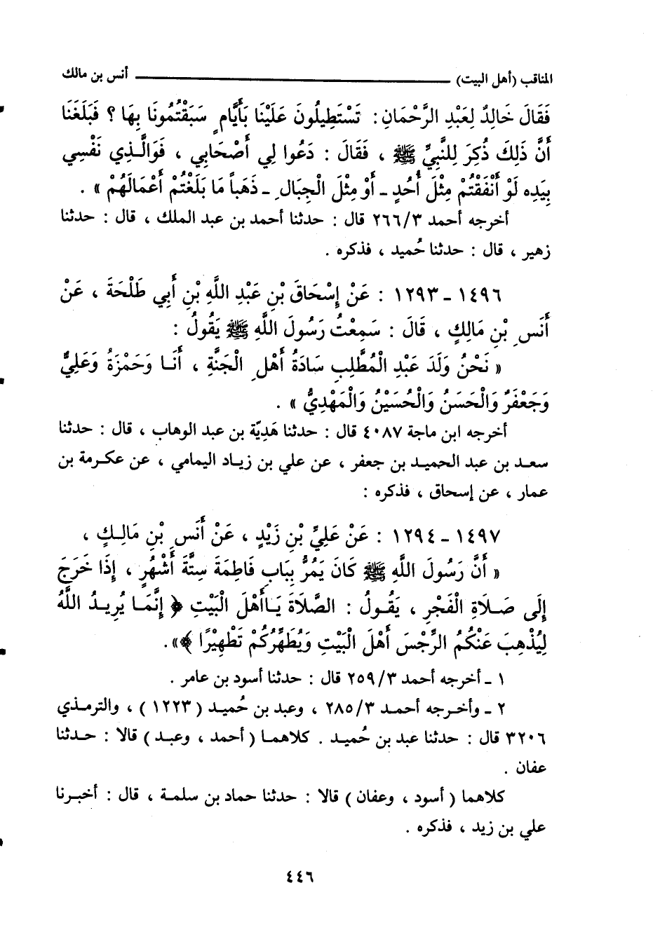 ١٤٩٦ - عَنْ إِسْحَاقَ بْنِ عَبْدِ اللهِ بْنِ أَبِي طَلْحَةَ، عَنْ أَنَسِ بْنِ مَالِكٍ، قَالَ: سَمِعْتُ رَسُولَ اللهِ صلى الله عليه وسلم يَقُولُ: