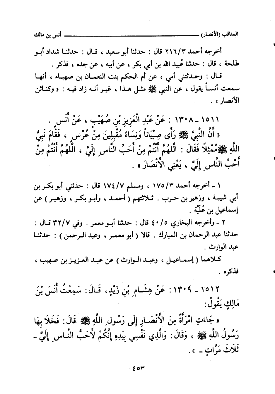 - وفي رواية: أَنَّ رَسُولَ اللهِ صلى الله عليه وسلم قَالَ، فِي الأَنْصَارِ: إِنَّكُمْ لَمِنْ أَحَبِّ النَّاسِ إِلَيَّ.