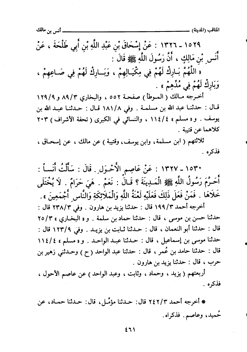 ١٥٣٠ - عَنْ عَاصِمٍ، الأحول. قَالَ: سَأَلْتُ أَنَسَ بْنَ مَالِكٍ: أَحَرَّمَ رَسُولُ اللهِ صلى الله عليه وسلم الْمَدِينَةَ؟ قَالَ: نَعَمْ، هِيَ حَرَامٌ، حَرَّمَهَا اللَّهُ وَرَسُولُهُ، لَا يُخْتَلَى خَلَاهَا، فَمَنْ فَعَلَ ذَلِكَ فَعَلَيْهِ لَعْنَةُ اللهِ، وَالْمَلَائِكَةِ، وَالنَّاسِ أَجْمَعِينَ.