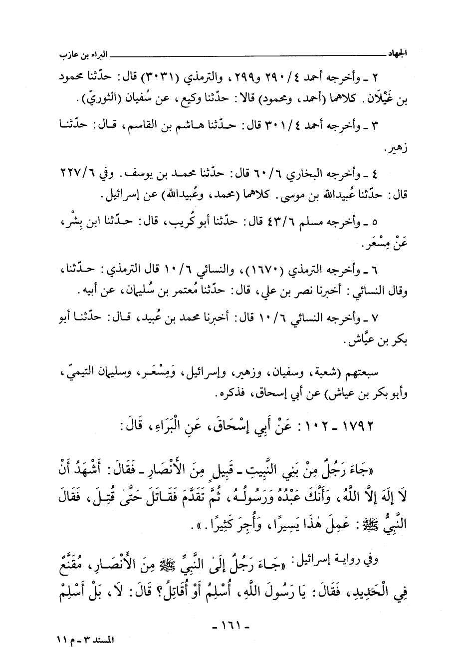 - صَرَّح أبو إِسْحَاق بالسَّمَاع، عند أحمد (١٨٦٧٧ و ١٨٨٥٦)، والدَّارِمِي، والبُخَارِي (٢٨٣١)، ومُسْلم (٤٩٤٥.