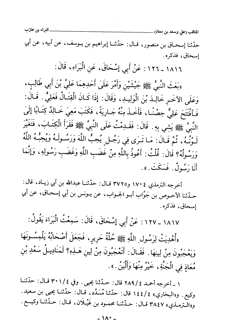١٨١٦ - عَنْ أَبِي إِسْحَاقَ، عَنِ الْبَرَاءِ، قَالَ:
