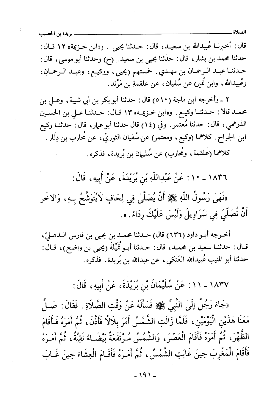 ١٨٣٦ - عن عَبْد اللهِ بن بُرَيْدَة , عَنْ أَبِيهِ، قَالَ: