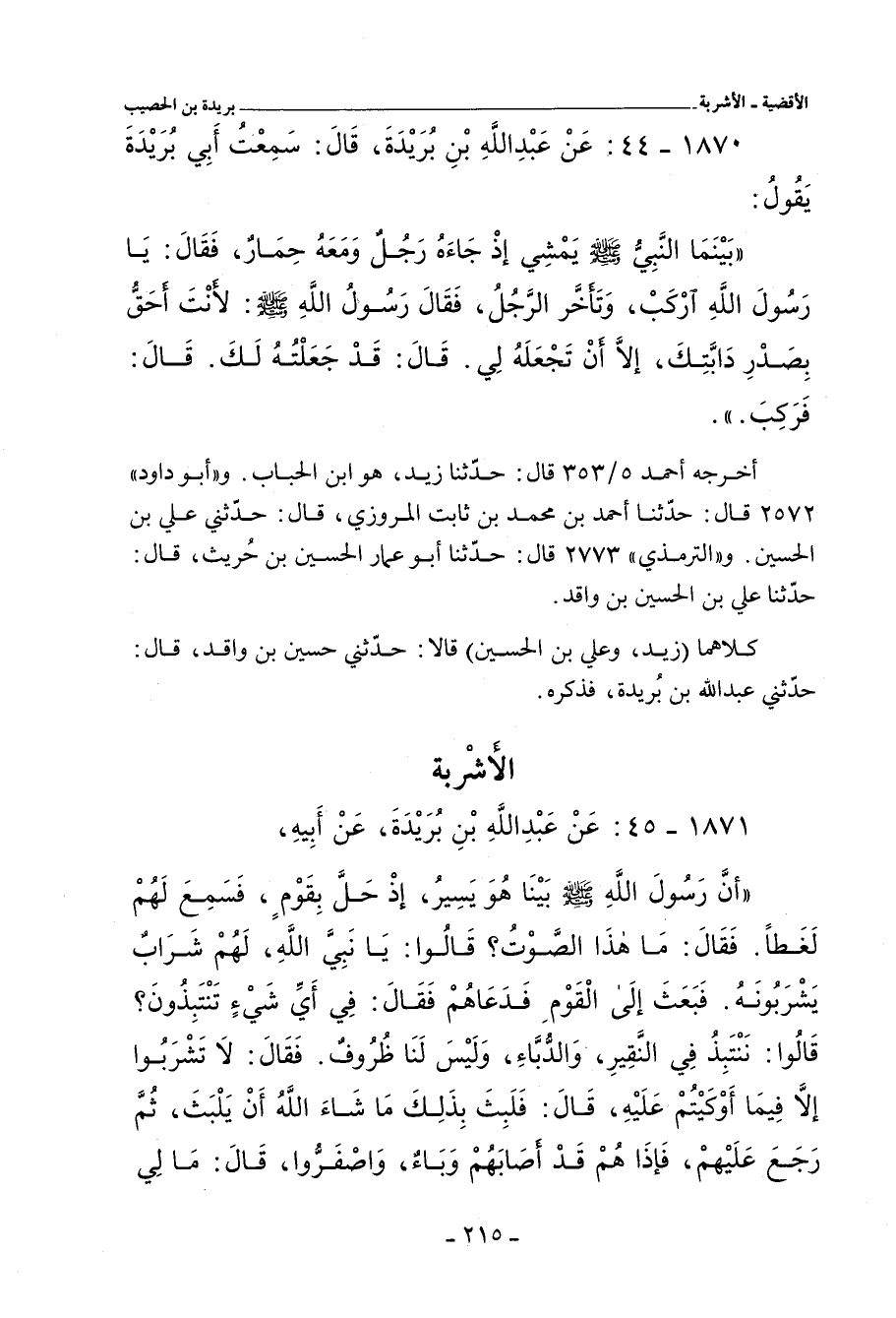 أخرجه أحمد ٥/ ٣٥٣ (٢٣٣٨٠) قال: حدَّثنا زَيْد، هو ابن الحُبَاب. و"أبو داود" ٢٥٧٢ قال: حدَّثنا أحمد بن مُحَمد بن ثابت المَرْوَزِي، حدَّثني علي بن حُسَيْن. والتِّرْمِذِيّ" ٢٧٧٣ قال: حدَّثنا أبو عَمَّار، الحُسَيْن بن حُرَيْث، حدَّثنا علي بن الحُسَيْن بن واقد.