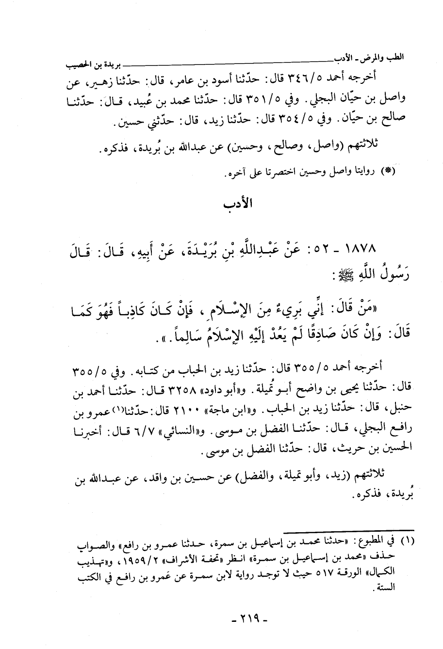 ثلاثتهم (زَيْد، وأبو تُمَيْلَة، والفَضْل) عن حُسَيْن بن واقد، عن عَبْد اللهِ بن بُ?َيْدَة، فذكره.