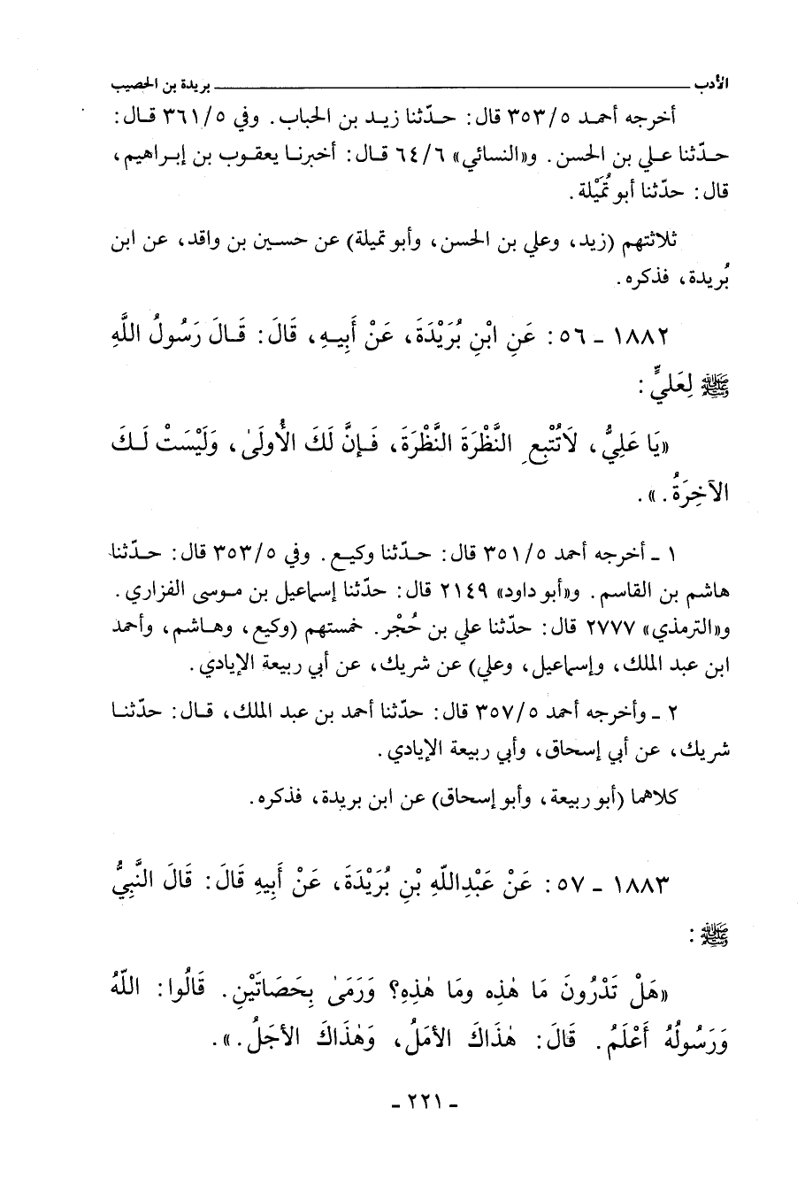 ١٨٨٢ - عَنِ ابْنِ بُرَيْدَةَ، عَنْ أَبِيهِ، قَالَ: قَالَ رَسُولُ اللهِ صلى الله عليه وسلم لِعَلِيٍّ: