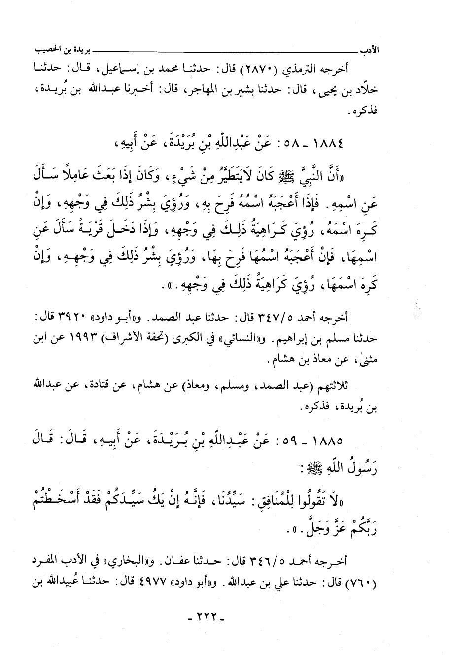 ١٨٨٥ - عَنْ عَبْدِ اللهِ بْنِ بُرَيْدَةَ، عَنْ أَبِيهِ، قَالَ: قَالَ رَسُولُ اللهِ صلى الله عليه وسلم: