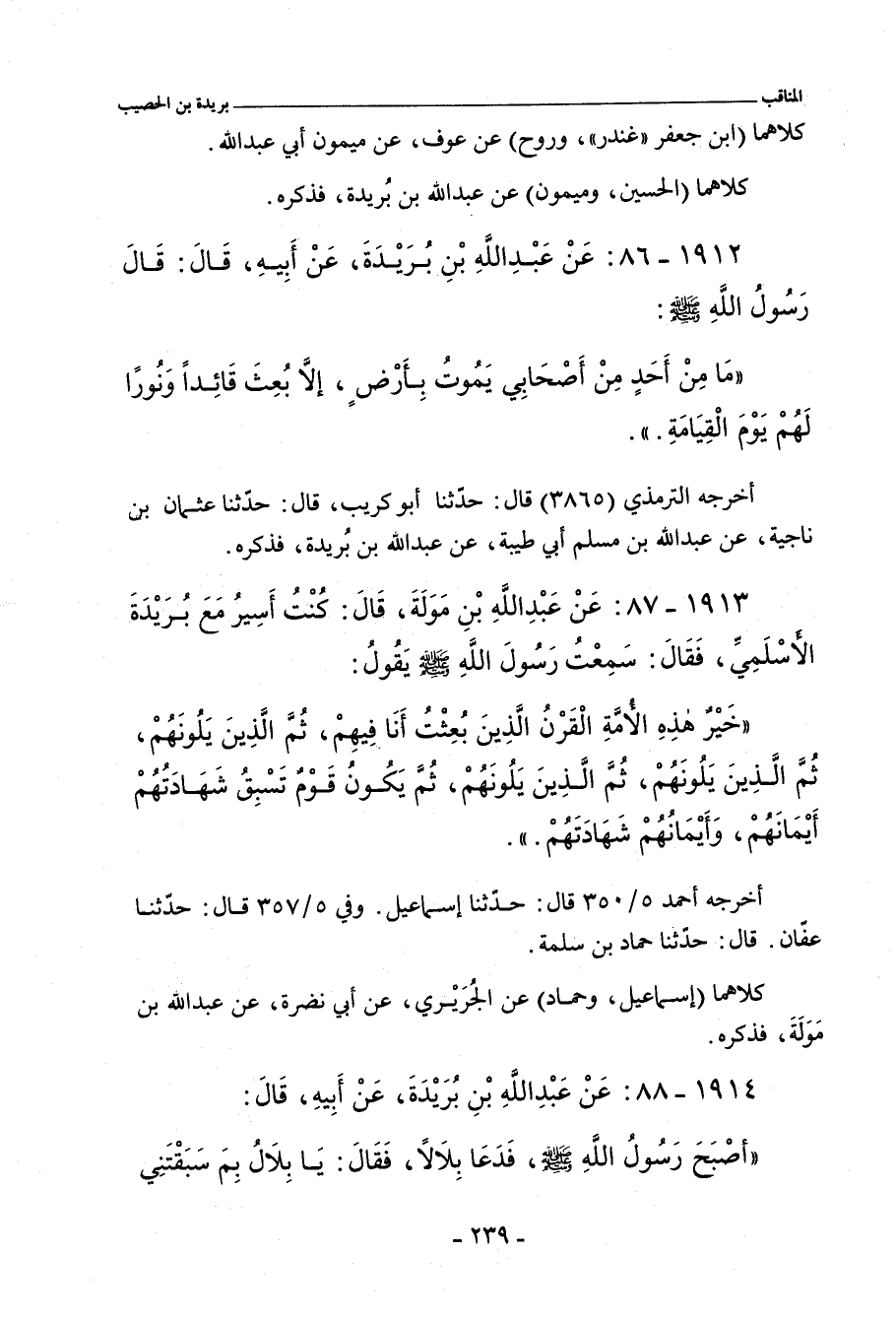 ١٩١٣ - عَنْ عَبْدِ اللهِ بْنِ مَوَلَةَ، قَالَ: كُنْتُ أَسِيرُ مَعَ بُرَيْدَةَ الأَسْلَمِيِّ، فَقَالَ: سَمِعْتُ رَسُولَ اللهِ صلى الله عليه وسلم يَقُولُ: