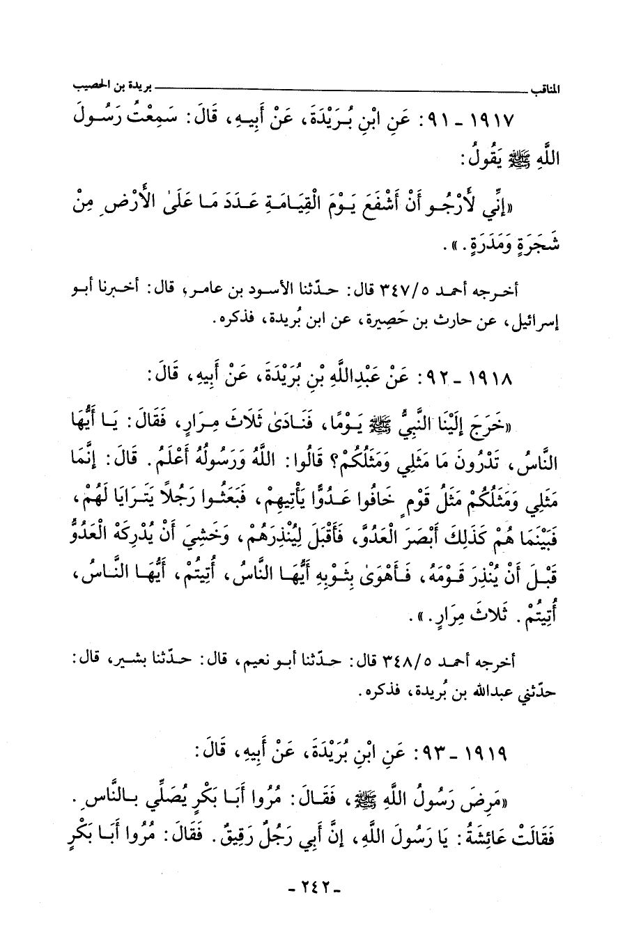 ١٩١٩ - عَنِ ابْنِ بُرَيْدَةَ، عَنْ أَبِيهِ، قَالَ: