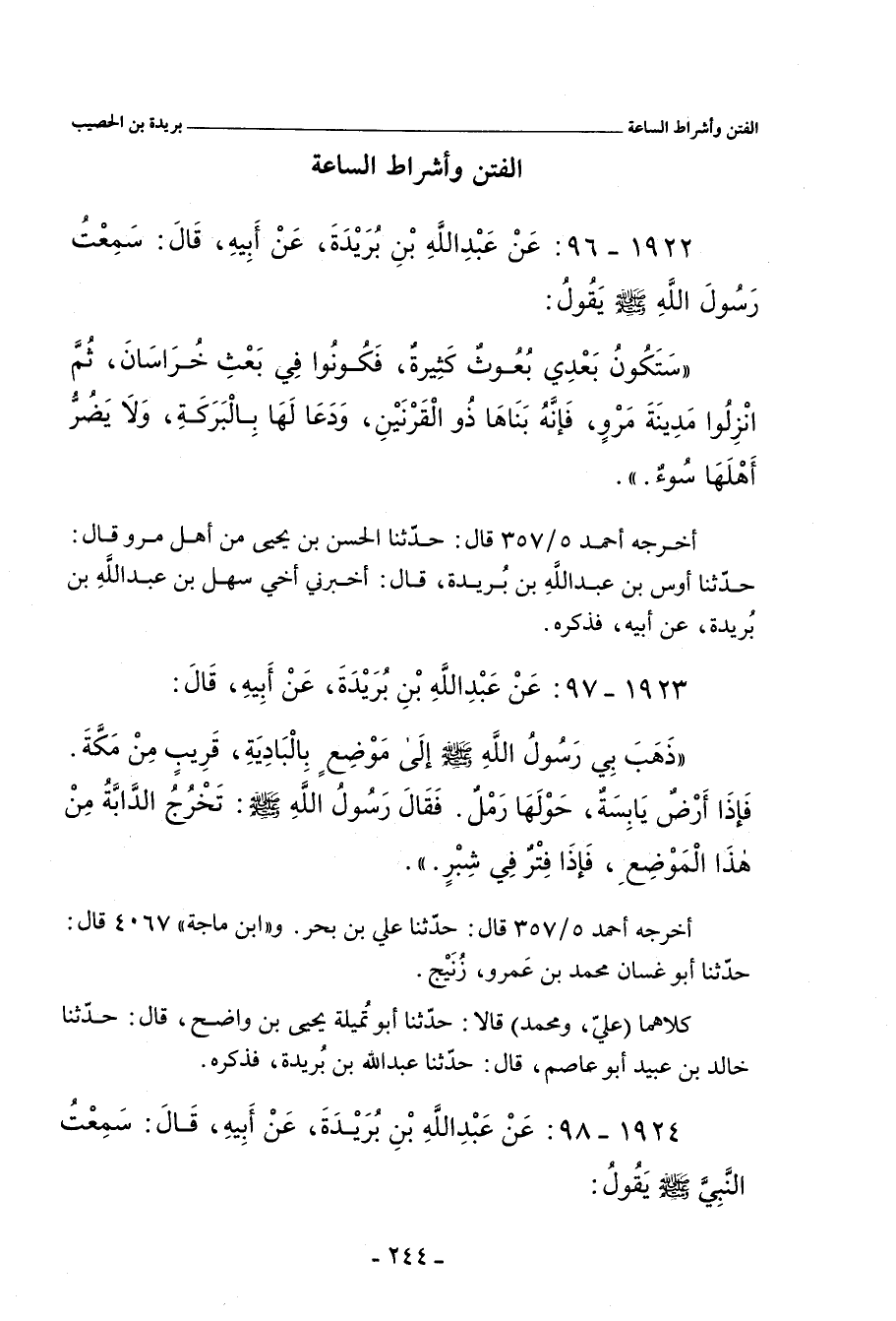 ١٩٢٢ - عَنْ عَبْدِ اللهِ بْنِ بُرَيْدَةَ , عَنْ أَبِيهِ , قَالَ: سَمِعْتُ رَسُولَ اللهِ صلى الله عليه وسلم يَقُولُ: